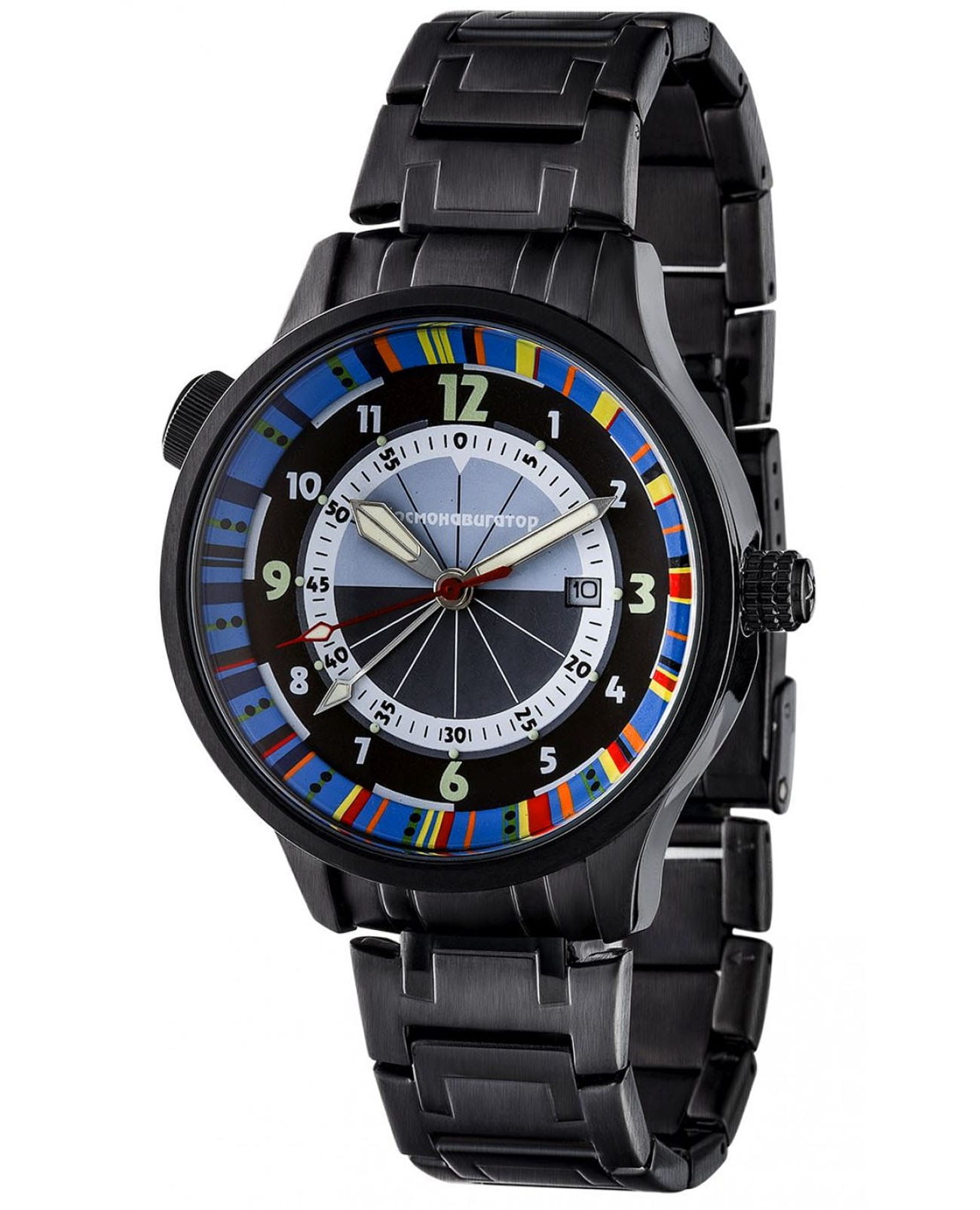 Часы Спецназ "Космонавигатор" С9124153-6М17 — уникальная модель, разработанная лётчиком-космонавтом Владимиром Джанибековым. Корпус диаметром 44 мм выполнен из нержавеющей стали с PVD-покрытиемPVDУльтратонкое покрытие наносится в технике вакуумного напыления, сочетает в себе нитрид титана особой прочности со слоем золота или оксида хрома. Несёт в себе декоративную или защитную функцию. чёрного цвета, а комбинированный циферблат защищён минеральным стекломМинеральное стеклоМинеральное стекло представляет собой искусственно выращенный минерал кварца. Такое стекло отличается особой устойчивостью к повреждениям и царапинам. Уступает по некоторым качествам сапфировому стеклу..