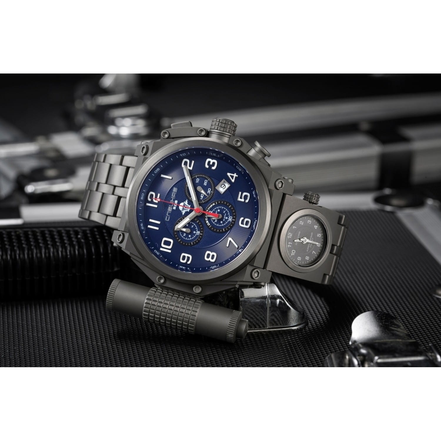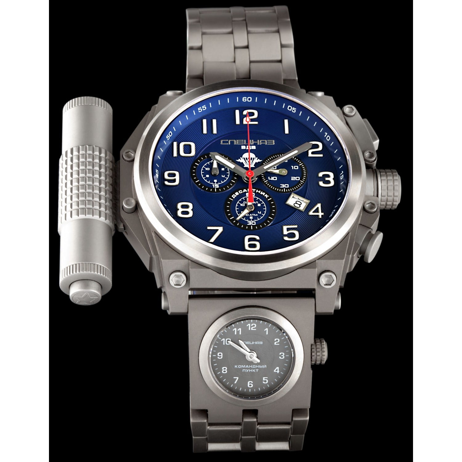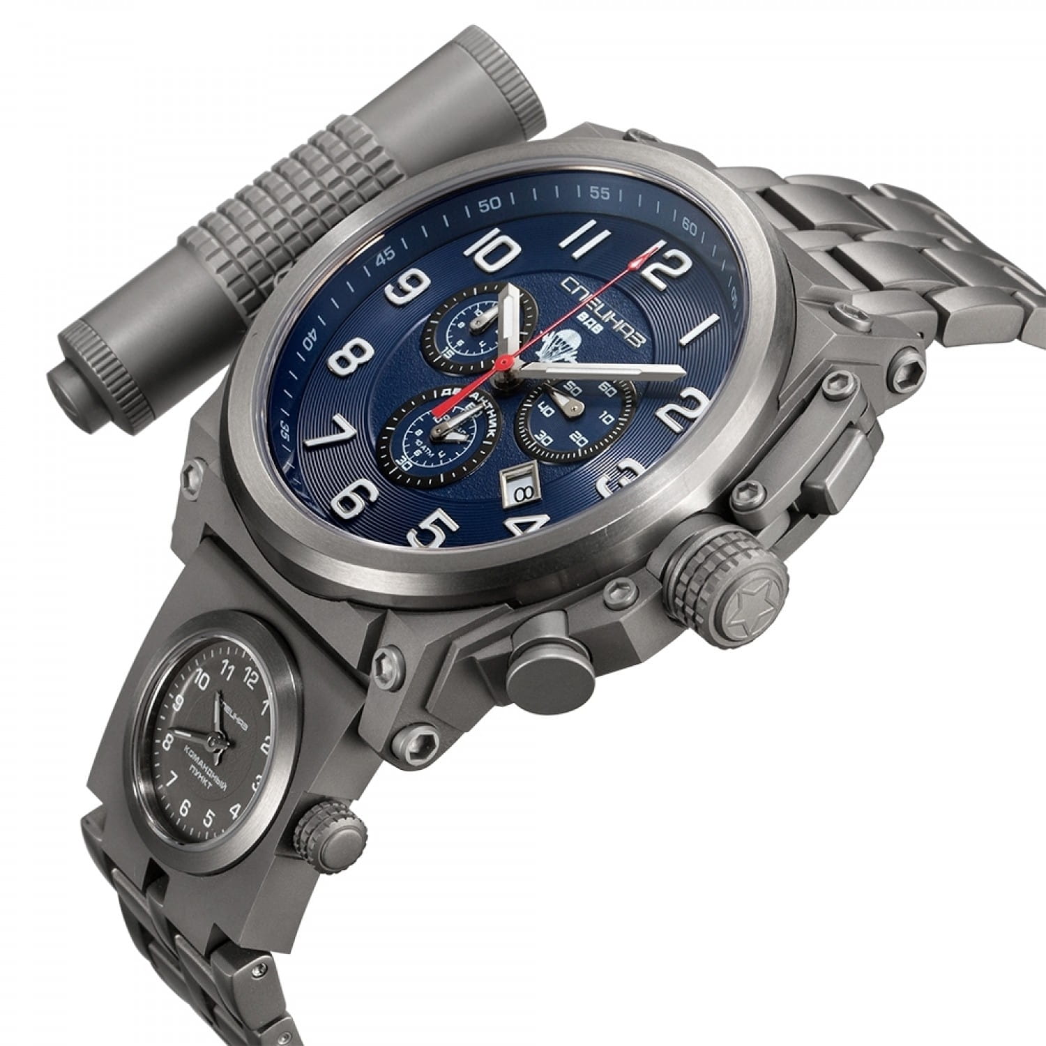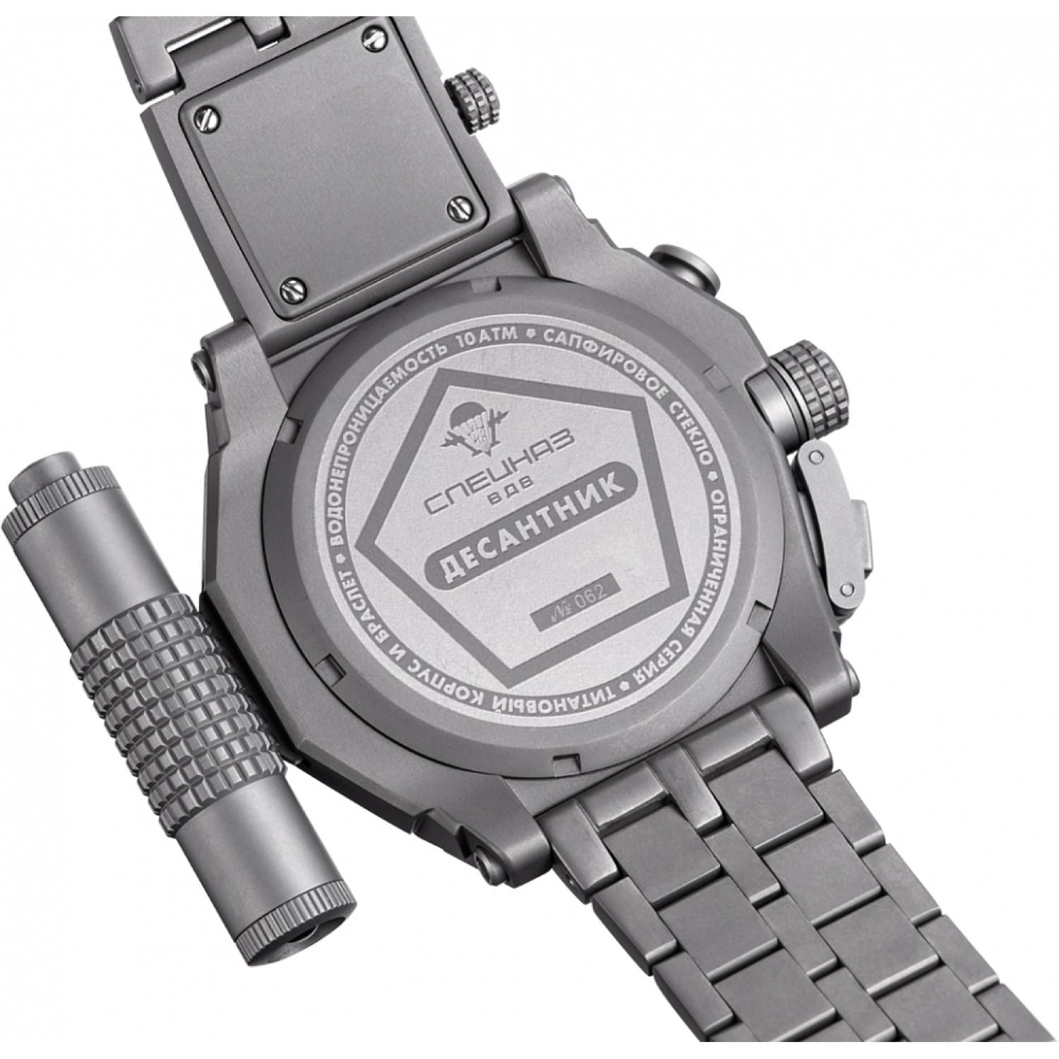 Дополнительной особенностью является съёмный контейнер с функцией LED-фонарика. Эти часы выпущены ограниченной серией и подойдут для тех, кто ценит сочетание надёжности, функциональности и уникального дизайна.