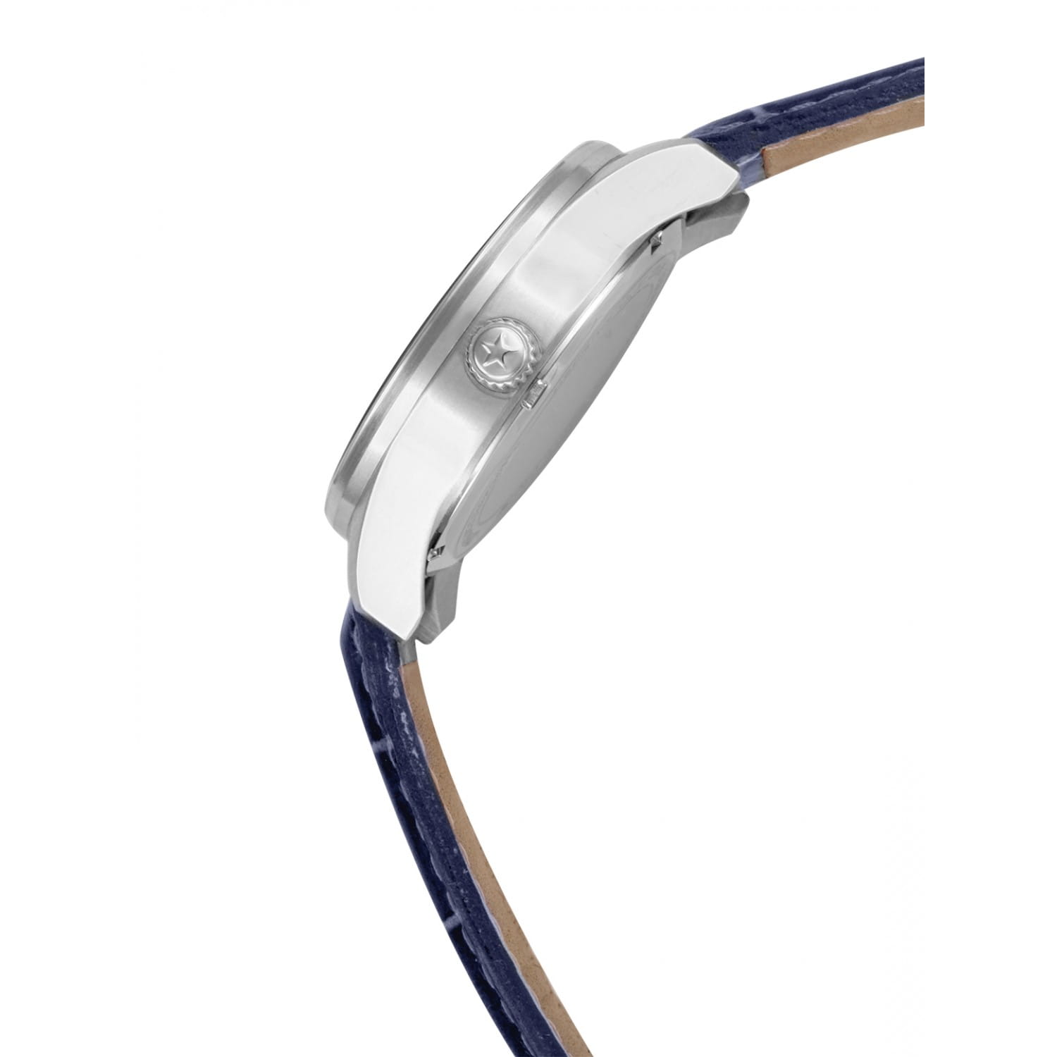 Внутри установлен японский механический механизм Miyota 8215 с автоподзаводом, обеспечивающий высокую точность хода. Запас хода составляет около 40 часов. На циферблате отображается текущее число месяца.