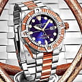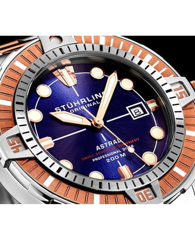 Мужские наручные часы Stuhrling Original 1005.04 из коллекции Aquadiver сочетают в себе надежность и стильный дизайн, идеально подходящий для активного образа жизни. Модель обладает круглым корпусом диаметром 45 мм, изготовленным из нержавеющей стали, что обеспечивает повышенную устойчивость к внешним воздействиям. БезельБезельВнешний ободок, закрепляющий стекло. В спортивных часах так называется поворотное кольцо с делениями на циферблате, выполняет роль таймера – замеряет отрезки времени на шкале. Неподвижный безель – элемент декора. Однонаправленно вращающийся безель на дайверских часах позволяет фиксировать моменты погружения и выныривания на поверхность. с PVD-покрытиемPVDУльтратонкое покрытие наносится в технике вакуумного напыления, сочетает в себе нитрид титана особой прочности со слоем золота или оксида хрома. Несёт в себе декоративную или защитную функцию.. Браслет выполнен из прочной стали с частичным PVD-покрытиемPVDУльтратонкое покрытие наносится в технике вакуумного напыления, сочетает в себе нитрид титана особой прочности со слоем золота или оксида хрома. Несёт в себе декоративную или защитную функцию. на раскладной застежкеРаскладная застёжкаТакой тип застёжки используется только на браслетах из металла. Она никогда не раскрывается полностью, происходит разделение на 2 и более частей. Раскладывающая застёжка снизит вероятность потери часов к минимуму., гарантирующей комфортное ношение и безопасность. Синий циферблат оснащен люминесцентным покрытиемЛюминесцентное покрытиеПозволяет считывать показания времени в темноте. Производители наносят на стрелки, часовые индексы, безель или поверхность циферблата светонакопительный состав, дающий холодное свечение. стрелок и маркеров, обеспечивающим высокую читаемость даже в условиях плохой видимости под водой . Для защиты циферблата используется стекло KrysternaKrysternaKrysterna — инновационное стекло для наручных часов. Благодаря уникальной структуре, Krysterna объединяет ключевые преимущества двух материалов: твердость сапфира, защищающую от царапин, и гибкость минерального стекла, обеспечивающую устойчивость к деформациям. Такая комбинация делает его идеальным решением для часов, подверженных экстремальным нагрузкам, сохраняя при этом оптическую прозрачность., которое надежно защищает от царапин и механических повреждений. Часы работают на механическом механизме с автоподзаводом, что гарантирует точное время без необходимости ручного завода. Водонепроницаемость до 200WR позволяет использовать их во время плавания и других водных видов спорта, включая дайвинг . Ударопрочный корпус и эргономичный дизайн делают эти часы идеальным выбором для любителей активного отдыха и профессионалов.