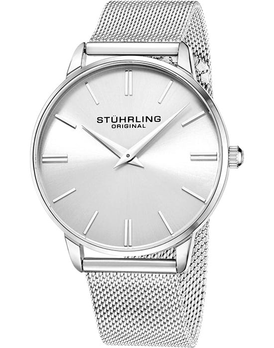 Stuhrling 3998.1 — элегантные мужские часы, объединяющие строгую классику и современную функциональность. Корпус из нержавеющей стали создают ощущение монолитной надёжности, а глубокий циферблат придаёт модели выразительность и характер. Стальной браслет миланского плетения на раскладном замкеРаскладной замокДанный вариант застежки используется только на часах с металлическим браслетом. Отличительная особенность такого крепления в том, что длина браслета становится универсальной и вы можете самостоятельно отрегулировать нужный вам размер – застежка просто двигается по браслету часов.. Прочное стекло KrysternaKrysternaKrysterna — инновационное стекло для наручных часов. Благодаря уникальной структуре, Krysterna объединяет ключевые преимущества двух материалов: твердость сапфира, защищающую от царапин, и гибкость минерального стекла, обеспечивающую устойчивость к деформациям. Такая комбинация делает его идеальным решением для часов, подверженных экстремальным нагрузкам, сохраняя при этом оптическую прозрачность. защищает циферблат от царапин, а надёжный кварцевый механизм гарантирует стабильную точность. Stuhrling — выбор уверенного мужчины, ценящего сочетание функциональности, лаконичного дизайна и безупречной отделки.