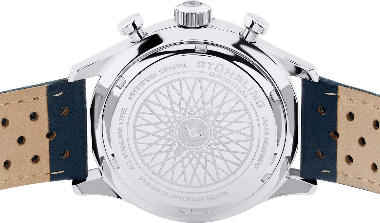 Stuhrling 934.02 — эффектные мужские часы в спортивно-классическом стиле, сочетающие энергичный характер и элегантное исполнение. Корпус из нержавеющей стали придаёт модели выразительность и статусный вид. Контрастный синий циферблат с белыми счётчиками хронографаХронографФункция позволяет измерять отрезки времени с особой точностью: часы, минуты, секунды. Верным признаком хронографа является наличие на циферблате 3 дополнительных окошек-счётчиков. и акцентами красного цвета создаёт динамичную композицию, а разметка тахиметра добавляет функциональности. Прочное стекло KrysternaKrysternaKrysterna — инновационное стекло для наручных часов. Благодаря уникальной структуре, Krysterna объединяет ключевые преимущества двух материалов: твердость сапфира, защищающую от царапин, и гибкость минерального стекла, обеспечивающую устойчивость к деформациям. Такая комбинация делает его идеальным решением для часов, подверженных экстремальным нагрузкам, сохраняя при этом оптическую прозрачность. защищает поверхность от царапин, сохраняя прозрачность и блеск. Перфорированный кожаный ремень со стандартной застежкой обеспечивает комфорт и спортивный характер образа. Stuhrling — выбор уверенного мужчины, для которого стиль, точность и мощная эстетика идут рука об руку.