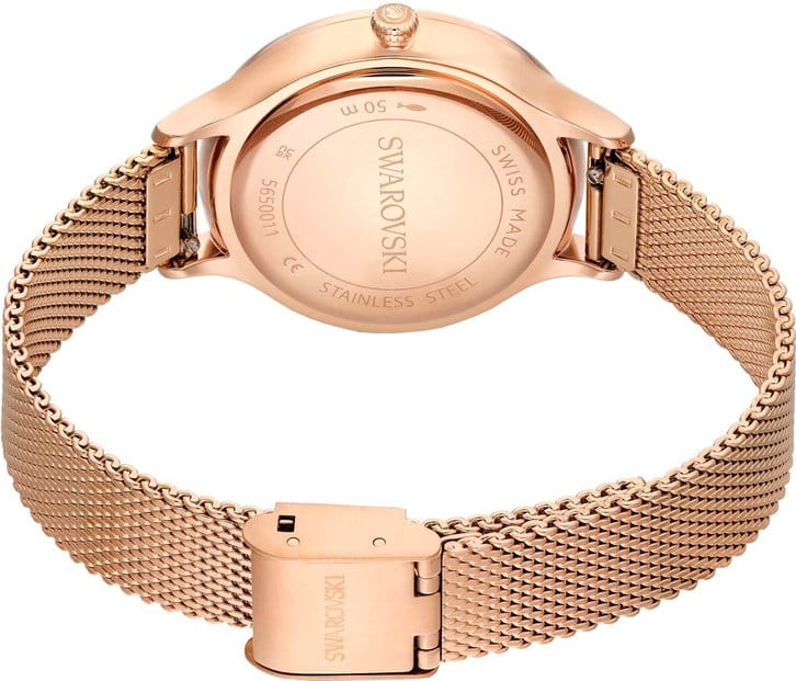 Часы Swarovski 5650011 представляют собой изысканное воплощение швейцарского мастерства и современного дизайна. Эти кварцевые часы выполнены из стали с розовым PVDPVDУльтратонкое покрытие наносится в технике вакуумного напыления, сочетает в себе нитрид титана особой прочности со слоем золота или оксида хрома. Несёт в себе декоративную или защитную функцию.-покрытием, что придает им утонченный и стильный вид. Серебристый циферблат украшен кристаллами Swarovski и изображением знаменитого лебедя на позиции 12 часов, придавая часам особую изысканность и блеск. Корпус диаметром 33 мм и браслет миланского плетения с розовым PVDPVDУльтратонкое покрытие наносится в технике вакуумного напыления, сочетает в себе нитрид титана особой прочности со слоем золота или оксида хрома. Несёт в себе декоративную или защитную функцию.-покрытием и раскладным замкомРаскладной замокДанный вариант застежки используется только на часах с металлическим браслетом. Отличительная особенность такого крепления в том, что длина браслета становится универсальной и вы можете самостоятельно отрегулировать нужный вам размер – застежка просто двигается по браслету часов. обеспечивают комфортное ношение и элегантный внешний вид. Сапфировое стеклоСапфировое стеклоПрочный и надёжный материал из кристалла сапфира синтетического происхождения, характеризующийся особой твёрдостью и устойчивостью к царапинам и повреждениям. защищает циферблат от царапин и повреждений, обеспечивая долговечность и надежность изделия. БезельБезельВнешний ободок, закрепляющий стекло. В спортивных часах так называется поворотное кольцо с делениями на циферблате, выполняет роль таймера – замеряет отрезки времени на шкале. Неподвижный безель – элемент декора. Однонаправленно вращающийся безель на дайверских часах позволяет фиксировать моменты погружения и выныривания на поверхность. также сделан из сапфирового стеклаСапфировое стеклоПрочный и надёжный материал из кристалла сапфира синтетического происхождения, характеризующийся особой твёрдостью и устойчивостью к царапинам и повреждениям.. Водозащита 50 WR позволяет не беспокоиться о случайных контактах с водой в повседневной жизни. Клиновидные стрелки в стиле Dauphine и рифленая заводная головка с логотипом Swarovski завершают образ, делая эти часы идеальным аксессуаром для тех, кто ценит качество и стиль в каждом элементе. Эти часы не только функциональны, но и являются настоящим произведением искусства, подчеркивающим ваш изысканный вкус.