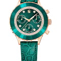 Часы Swarovski 5672931 представляют собой изысканное сочетание стиля и функциональности, идеально подходящее для ценителей элегантных аксессуаров. Эти швейцарские кварцевые часы с хронографомХронографФункция позволяет измерять отрезки времени с особой точностью: часы, минуты, секунды. Верным признаком хронографа является наличие на циферблате 3 дополнительных окошек-счётчиков. и секундомеромСекундомерСекундоме́р — прибор, способный измерять интервалы времени с точностью до долей секунды. заключены в корпус из стали с розовым PVDPVDУльтратонкое покрытие наносится в технике вакуумного напыления, сочетает в себе нитрид титана особой прочности со слоем золота или оксида хрома. Несёт в себе декоративную или защитную функцию. покрытием, который дополнен изумрудным циферблатом. Особое внимание привлекает инкрустация кристаллами Swarovski, украшающими корпус и циферблат, создавая эффектный блеск и подчеркивая роскошь изделия. Минеральное стеклоМинеральное стеклоМинеральное стекло представляет собой искусственно выращенный минерал кварца. Такое стекло отличается особой устойчивостью к повреждениям и царапинам. Уступает по некоторым качествам сапфировому стеклу. надежно защищает циферблат, а водозащита 50 WR позволяет не беспокоиться о контакте с водой в повседневных ситуациях. Эти часы не только точные и надежные, благодаря кварцевому механизму, но и невероятно стильные, благодаря кристальному безелюБезельВнешний ободок, закрепляющий стекло. В спортивных часах так называется поворотное кольцо с делениями на циферблате, выполняет роль таймера – замеряет отрезки времени на шкале. Неподвижный безель – элемент декора. Однонаправленно вращающийся безель на дайверских часах позволяет фиксировать моменты погружения и выныривания на поверхность. и ремешку изумрудного цвета из натуральной итальянской телячьей кожи с тиснением под крокодила, что обеспечивает комфортное ношение и стильный внешний вид. Заводная головка дополнительно украшена кристаллом круглой огранки, придающим часам завершенность и изящество. Люминесцентное покрытиеЛюминесцентное покрытиеПозволяет считывать показания времени в темноте. Производители наносят на стрелки, часовые индексы, безель или поверхность циферблата светонакопительный состав, дающий холодное свечение. на стрелках обеспечивает отличную видимость в темноте. Эти часы не просто аксессуар, а настоящее произведение искусства, способное стать ярким акцентом любого образа.