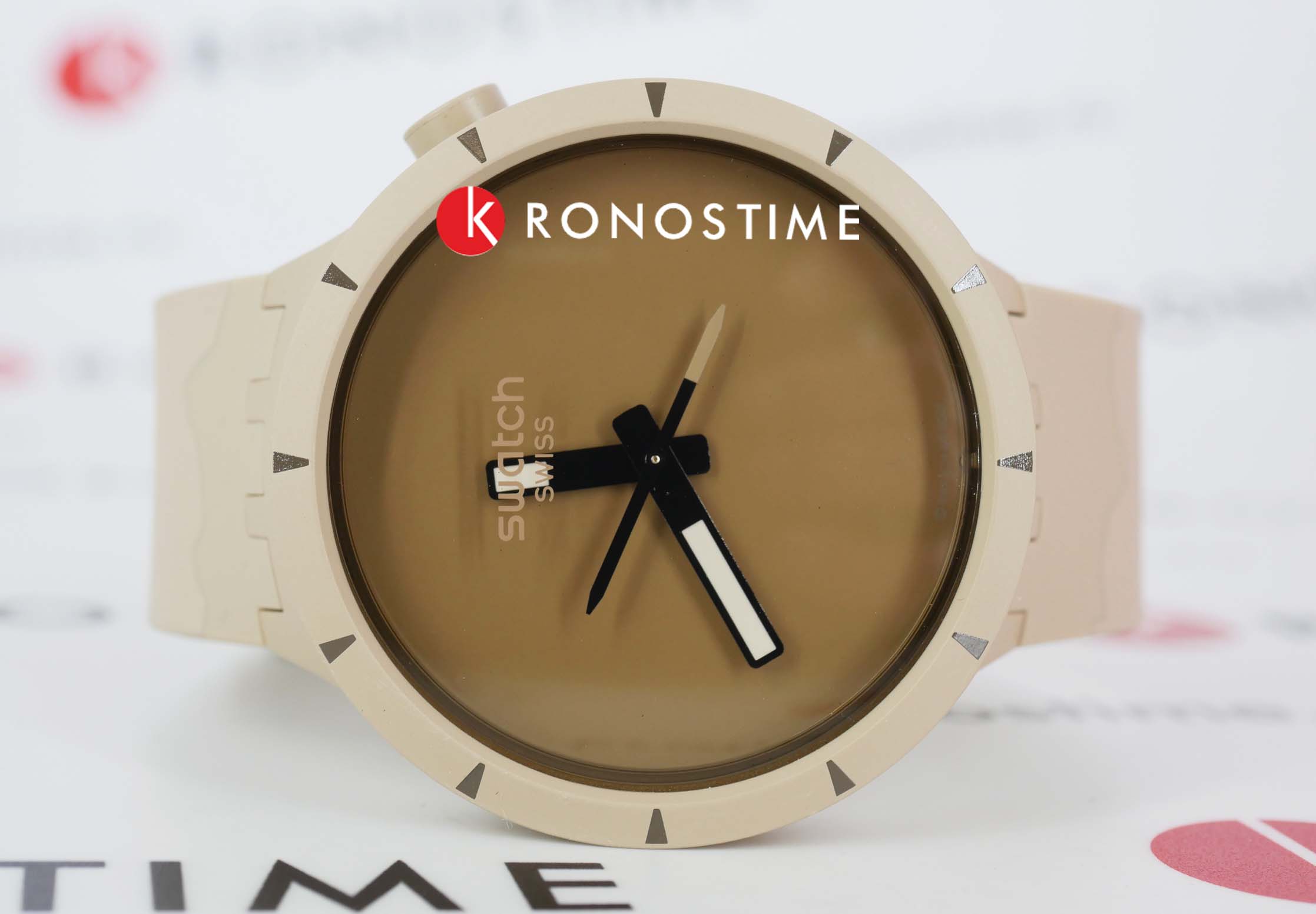 Часы Swatch SB03C101 — это стильный и современный аксессуар для тех, кто ценит лёгкость и комфорт. Часы идеально подойдут как для мужчин, так и для женщин. Корпус из биокерамикиБиокерамикаБиокерамика — это материал, который на две трети состоит из керамики, на одну треть — из биопластика. Он сочетает в себе лучшие качества обоих материалов и обладает прочностью и шелковистой на ощупь текстурой., а ремешок — из однотонного матово-бежевого силикона. Коричневый циферблат подчеркивает белые акценты на темных стрелках. Секундная стрелка, прообразом которой стала стрелка компаса, усиливает дух приключений. На часовую и минутную стрелки нанесено люминесцентное покрытиеЛюминесцентное покрытиеПозволяет считывать показания времени в темноте. Производители наносят на стрелки, часовые индексы, безель или поверхность циферблата светонакопительный состав, дающий холодное свечение., которое светится в темноте, создавая необычное изображение. Водозащита 30 метров делает часы практичными для повседневного использования. Эти часы подойдут для повседневного ношения и станут ярким акцентом в вашем наряде.