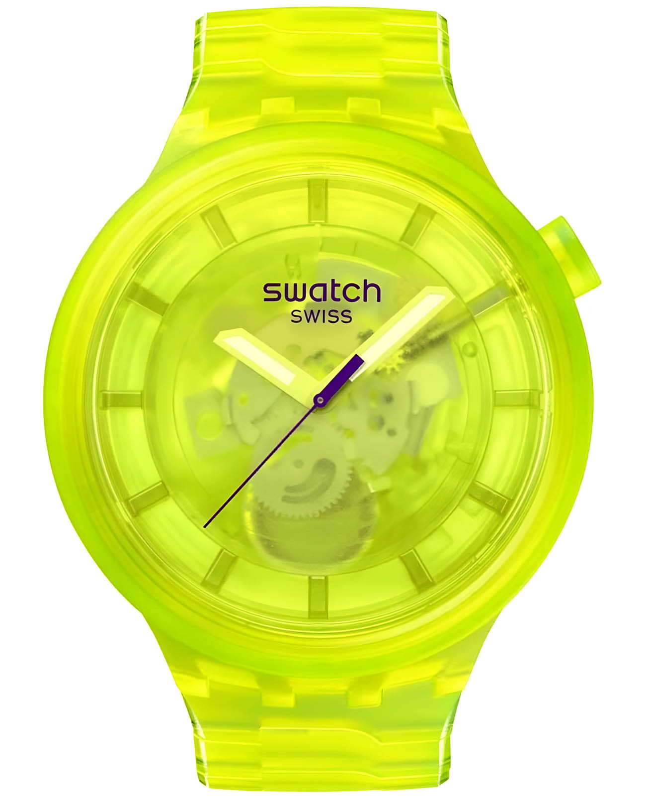 Часы Swatch SB05J103 — это стильный и современный аксессуар для тех, кто ценит лёгкость и комфорт. Часы идеально подойдут как для мужчин, так и для женщин. Эти большие часы желтого цвета могут похвастаться прозрачным корпусом и циферблатом желтого оттенка, изготовленными из биосодержащих материалов, и браслетом с застежкой-бабочкойЗастёжка "бабочка"Такой вид застёжки дополняется предохранителями, помогающими избежать случайного раскрытия браслета. Обладают изящным исполнением. . Прозрачный желтый циферблат с биологическим покрытием позволяет видеть механизм, а на часовую и минутную стрелки нанесено люминесцентное покрытиеЛюминесцентное покрытиеПозволяет считывать показания времени в темноте. Производители наносят на стрелки, часовые индексы, безель или поверхность циферблата светонакопительный состав, дающий холодное свечение., которое светится в темноте, создавая необычное изображение. Водозащита 30 метров делает часы практичными для повседневного использования. Эти часы подойдут для повседневного ношения и станут ярким акцентом в вашем наряде.