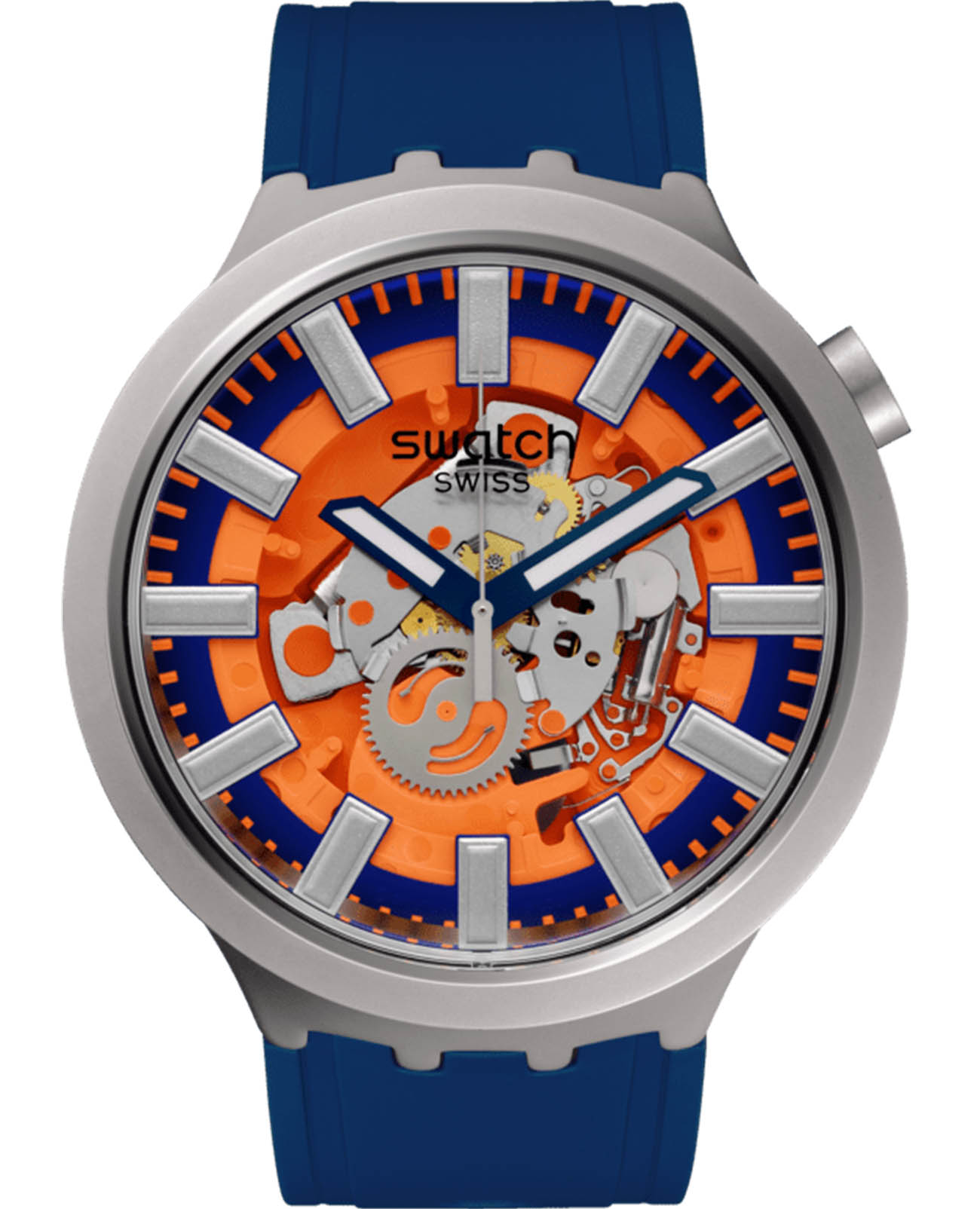 Часы Swatch SB07S114 — это стильный и современный аксессуар для тех, кто ценит лёгкость и комфорт. Часы идеально подойдут как для мужчин, так и для женщин. Эти крупные темно-синие часы с оранжевым и серебристым принтом на открытом циферблате заключены в матированный стальной корпус. Отсчет времени ведут синие часовая и минутная стрелки, светящиеся в темноте благодаря люминесцентному покрытиюЛюминесцентное покрытиеПозволяет считывать показания времени в темноте. Производители наносят на стрелки, часовые индексы, безель или поверхность циферблата светонакопительный состав, дающий холодное свечение., а также белая секундная стрелка. Темно-синий ремешок с оранжевым и синим тренчиками и стальной полупряжкой прекрасно дополняет модель. Водозащита 30 метров делает часы практичными для повседневного использования. Эти часы подойдут для повседневного ношения и станут ярким акцентом в вашем наряде.