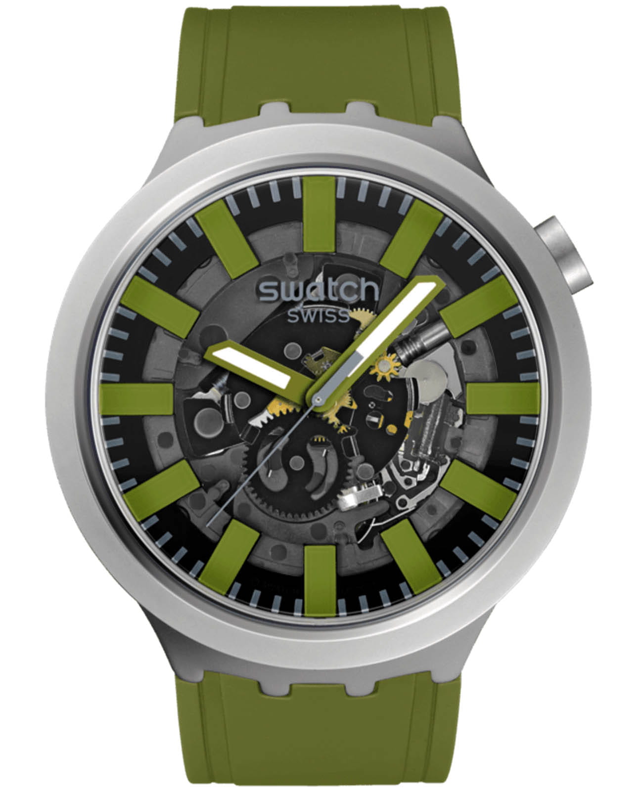 Часы Swatch SB07S118 — это стильный и современный аксессуар для тех, кто ценит лёгкость и комфорт. Часы идеально подойдут как для мужчин, так и для женщин. Эти крупные часы с черно-серым открытым циферблатом, сквозь который просматриваются элементы ходового механизма, зелеными часовыми отметками и серой минутной шкалой смотрятся очень эффектно. Отсчет времени ведут часовая и минутная стрелки зеленого цвета с эффектом свечения в темноте благодаря люминесцентному покрытиюЛюминесцентное покрытиеПозволяет считывать показания времени в темноте. Производители наносят на стрелки, часовые индексы, безель или поверхность циферблата светонакопительный состав, дающий холодное свечение., а также серая секундная стрелка. Корпус и пушер из нержавеющей стали, матированные методом пескоструйной обработки, выделяются на фоне темно-зеленого матового ремешка с черным и зеленым тренчиками и стальной полупряжкой. Водозащита 30 метров делает часы практичными для повседневного использования. Эти часы подойдут для повседневного ношения и станут ярким акцентом в вашем наряде.