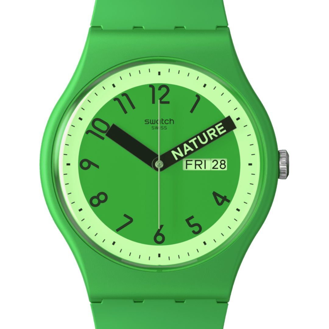 Часы Swatch SO29G704 — стильный и надежный аксессуар. Эти специальные часы Swatch Pride 2023 имеют циферблат с зеленым принтом и зеленое стекло из биоматериала в корпусе из биоматериала. Стрелки часов и минут черные, при этом стрелка минут указывает на значение цвета зеленого в флаге Pride: природа. Соответствующий ремешок этих зеленых часов включает две специальные петли, которые образуют радугу, когда они соединены. Ремешок силиконовый на классической застежке. Внутри часов установлен надежный кварцевый механизм, который обеспечивает точность хода. Эти часы водонепроницаемы до 30 метров, что позволяет не беспокоиться о случайных брызгах или дождевых каплях. Swatch SO29G704 — это идеальный выбор для тех, кто ценит сочетание стиля, комфорта и функциональности в одном аксессуаре.
