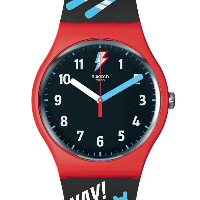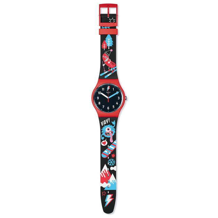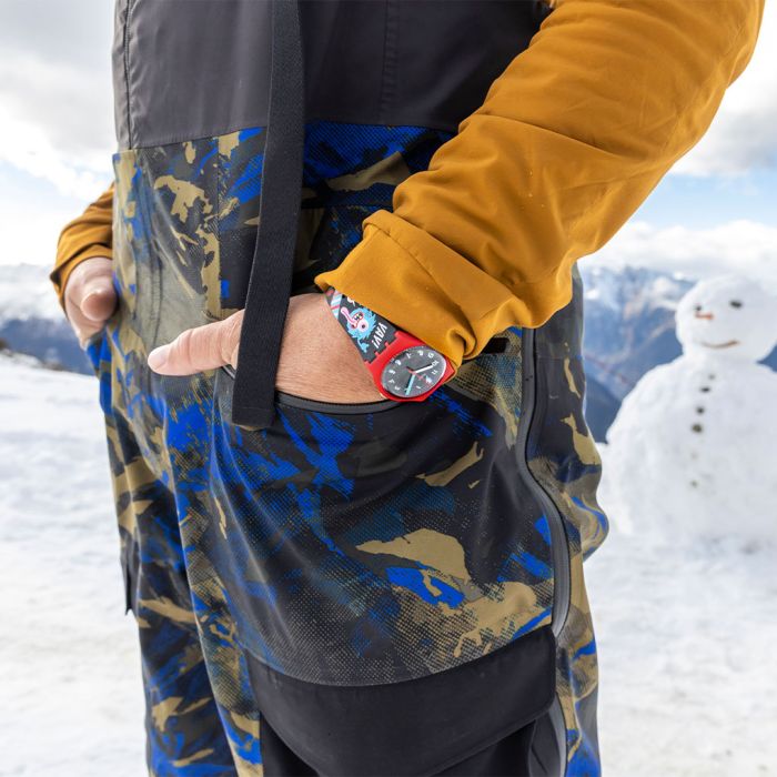 Часы Swatch SO29R105 —  стильный и надежный аксессуар. Специалист по сноуборд-кроссу Ксавье Де Лё Рю и его 3-летняя дочь Марго любят экшен и приключения на склоне. После этого они с удовольствием отдыхают в своем шале в Вербье, играя с забавными монстрами или слушая истории. В связи с этим был создан набор, в который входит модель Swatch New Gent SLIDE MASTER в парном стиле (детские часы Swatch SZS38 продаются отдельно!). Красный корпус и черный ремешок изготовлены из биопластика, материала, производимого на основе возобновляемых ресурсов. На нем напечатаны маленькие монстры на лыжах или сноубордах, мчащиеся по склонам. На черном циферблате белые арабские цифры, а минутная стрелка выполнена в светло-голубом цвете, что соответствует индексам по краю. В водонепроницаемых часах установлен точный кварцевый механизм с батареей. Ремешок из биоматериала на стандартной застёжке. Эти часы водонепроницаемы до 30 метров, что позволяет не беспокоиться о случайных брызгах или дождевых каплях. Swatch SO29R105 — это идеальный выбор для тех, кто ценит сочетание стиля, комфорта и функциональности в одном аксессуаре.