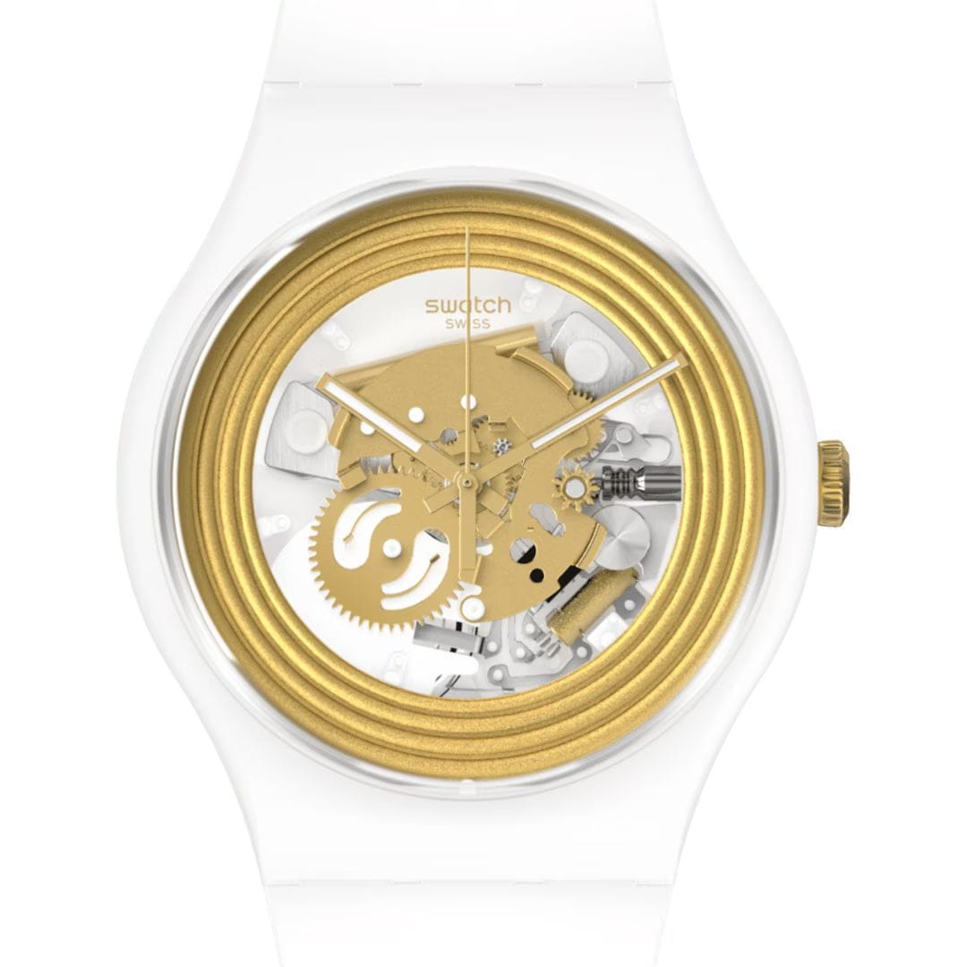 Часы Swatch SO29W107 — эффектный и удобный аксессуар. Современный взгляд на классику. Часы имеют белый корпус из биоматериала и золотистое оформление прозрачного циферблата, в котором можно наблюдать механизм часов. Ремешок из силикона на стандартной застёжке. Внутри часов установлен надежный кварцевый механизм, который обеспечивает точность хода. Эти часы водонепроницаемы до 30 метров, что позволяет не беспокоиться о случайных брызгах или дождевых каплях. Swatch SO29W107 — это идеальный выбор для тех, кто ценит сочетание стиля, комфорта и функциональности в одном аксессуаре.