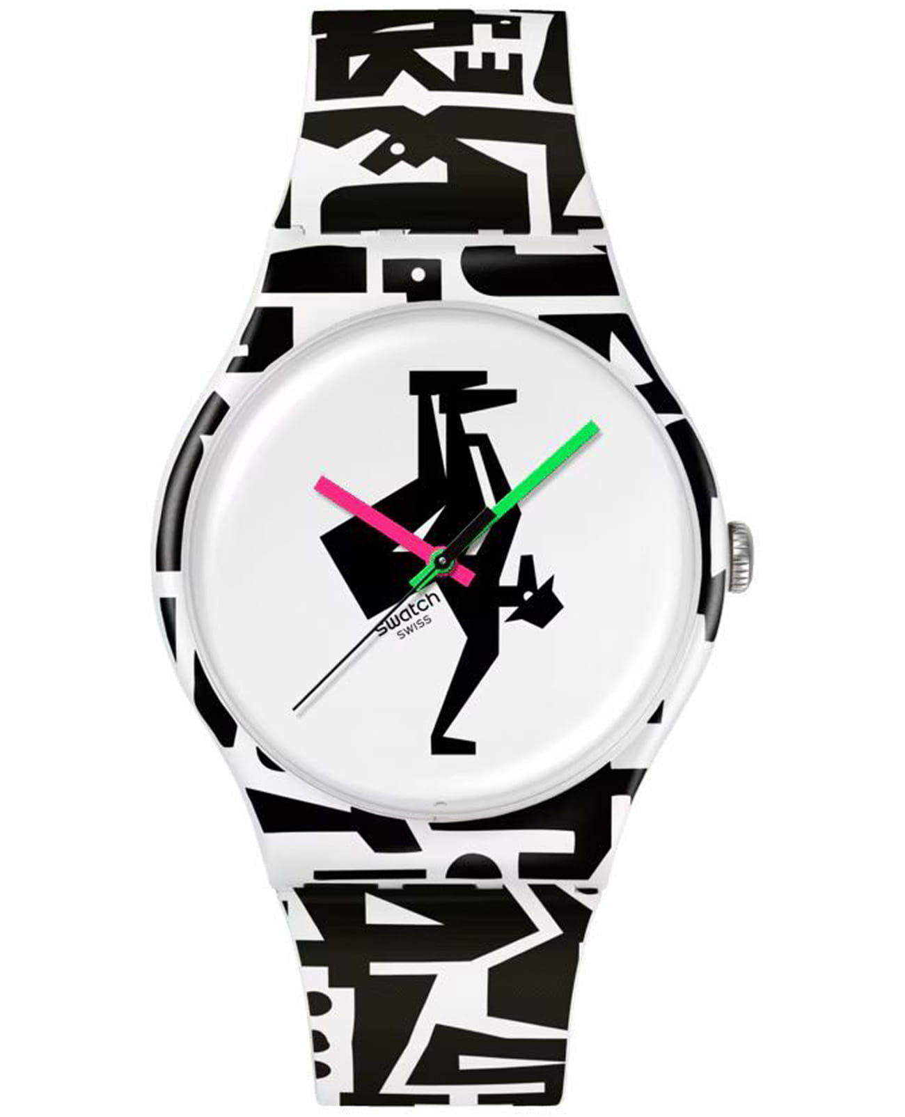 Часы Swatch SO29Z147 — стильный и удобный аксессуар. Эти веселые часы были созданы в сотрудничестве с художником и графическим дизайнером Grotesk. Белый циферблат украшен черной печатью, а также розовой часовой стрелкой, зеленой минутной стрелкой и черной секундной стрелкой, все под стеклом из биоматериала. Черный дизайн напечатан на матовом белом ремешке, петле и корпусе из биоматериала. Белая пряжка завершает образ этих часов. Ремешок силиконовый на стандартной застёжке. Внутри часов установлен надежный кварцевый механизм, который обеспечивает точность хода. Эти часы водонепроницаемы до 30 метров, что позволяет не беспокоиться о случайных брызгах или дождевых каплях. Swatch SO29Z147 — это идеальный выбор для тех, кто ценит сочетание стиля, комфорта и функциональности в одном аксессуаре.