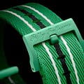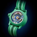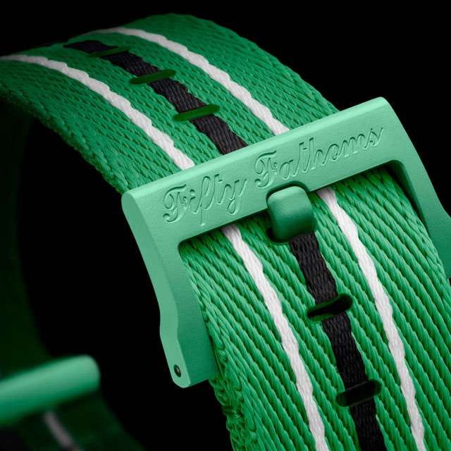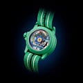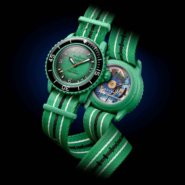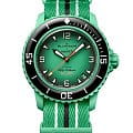 Часы Swatch SO35I100CS - Blancpain X Swatch отдают дань уважения модели Fifty Fathoms от Blancpain, первым настоящим часам для дайвинга. Зеленый корпус и заводная головка часов изготовлены из материала Bioceramic. Слово "Swatch" выгравировано на внешней левой стороне корпуса. Металлический циферблат напечатан в несколько слоев цвета для создания эффекта градиента. Часовые индексы, часовая и минутная стрелки, а также шкала на безеле обогащены люминесцентным покрытиемЛюминесцентное покрытиеПозволяет считывать показания времени в темноте. Производители наносят на стрелки, часовые индексы, безель или поверхность циферблата светонакопительный состав, дающий холодное свечение. Grade A Super-LumiNova® для превосходной читаемости в темноте. Часы оснащены зеленым однонаправленным вращающимся безелемБезельВнешний ободок, закрепляющий стекло. В спортивных часах так называется поворотное кольцо с делениями на циферблате, выполняет роль таймера – замеряет отрезки времени на шкале. Неподвижный безель – элемент декора. Однонаправленно вращающийся безель на дайверских часах позволяет фиксировать моменты погружения и выныривания на поверхность. из материала Bioceramic и стеклом из биоматериалов. Механизм SISTEM51 виден благодаря прозрачному сапфировому стеклу и украшен цифровым изображением Индийского океана и голожаберного моллюска Nembrotha Kubaryana. На задней крышке часов можно найти пять вдохновляющих надписей: СТРАСТЬ К ДАЙВИНГУ – ЛИЦЕНЗИЯ НА ИССЛЕДОВАНИЕ – ДЫХАНИЕ ОКЕАНА – ЗАЩИЩАЙ ТО, ЧТО ЛЮБИШЬ и ПОГРУЗИСЬ. Ремешок NATO изготовлен из переработанных рыболовных сетей, извлеченных из моря. Пряжка и петли сделаны из материала Bioceramic.
