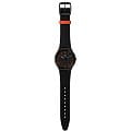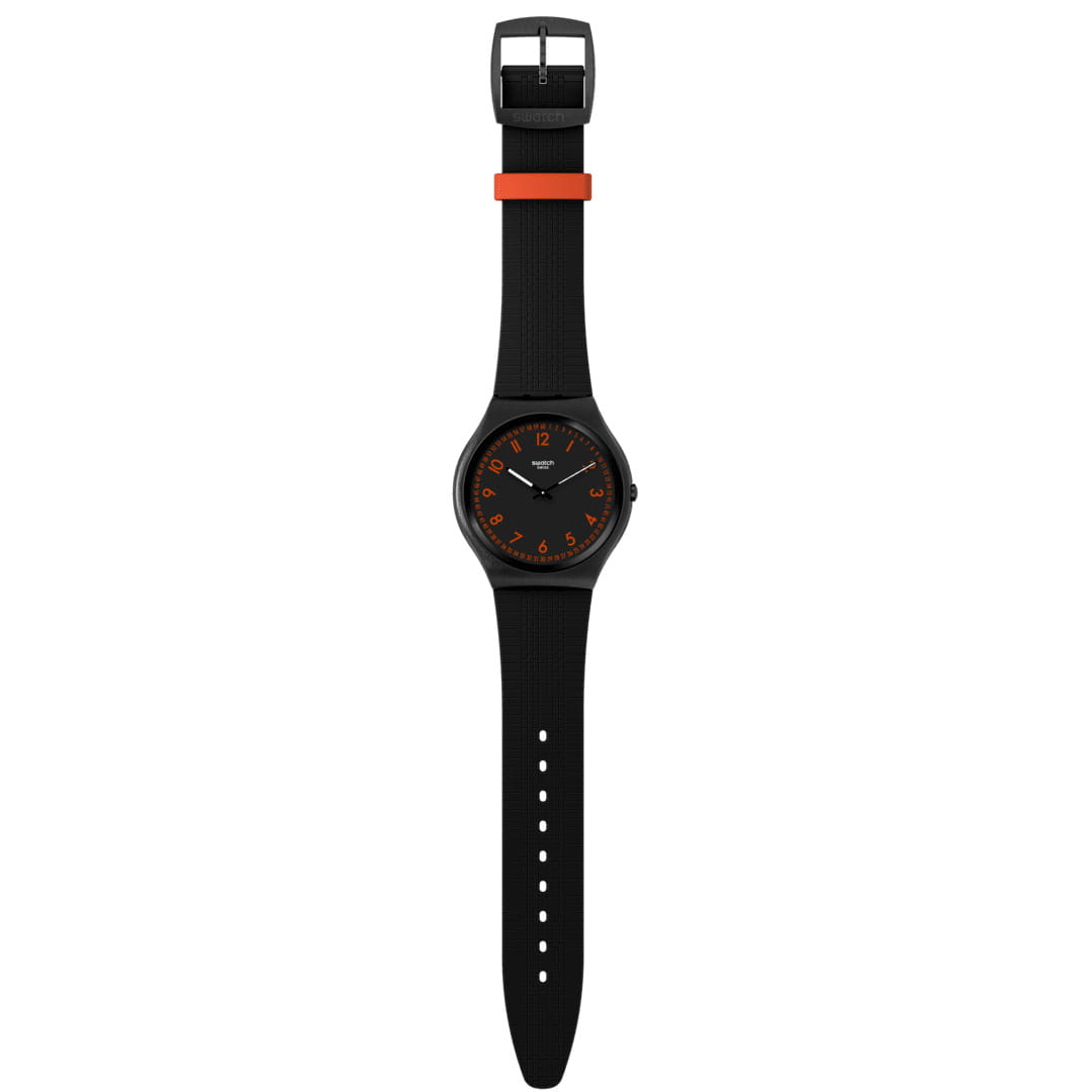 Часы Swatch SS07B106 — это стильный и современный аксессуар для тех, кто ценит лёгкость и комфорт. Часы идеально подойдут как для мужчин, так и для женщин. Эффектность данной модели придает черный циферблат с красными индексами и черными стрелками, светящимися в темноте благодаря люминесцентному покрытиюЛюминесцентное покрытиеПозволяет считывать показания времени в темноте. Производители наносят на стрелки, часовые индексы, безель или поверхность циферблата светонакопительный состав, дающий холодное свечение., а также минеральное стеклоМинеральное стеклоМинеральное стекло представляет собой искусственно выращенный минерал кварца. Такое стекло отличается особой устойчивостью к повреждениям и царапинам. Уступает по некоторым качествам сапфировому стеклу.. Эти черные часы дополнены каучуковым ремешком с текстурированной лицевой стороной и красным тренчиком, а также матовой пряжкой и корпусом с черным PVDPVDУльтратонкое покрытие наносится в технике вакуумного напыления, сочетает в себе нитрид титана особой прочности со слоем золота или оксида хрома. Несёт в себе декоративную или защитную функцию. покрытием.  Водозащита 30 метров делает часы практичными для повседневного использования. Эти часы подойдут для повседневного ношения и станут ярким акцентом в вашем наряде.