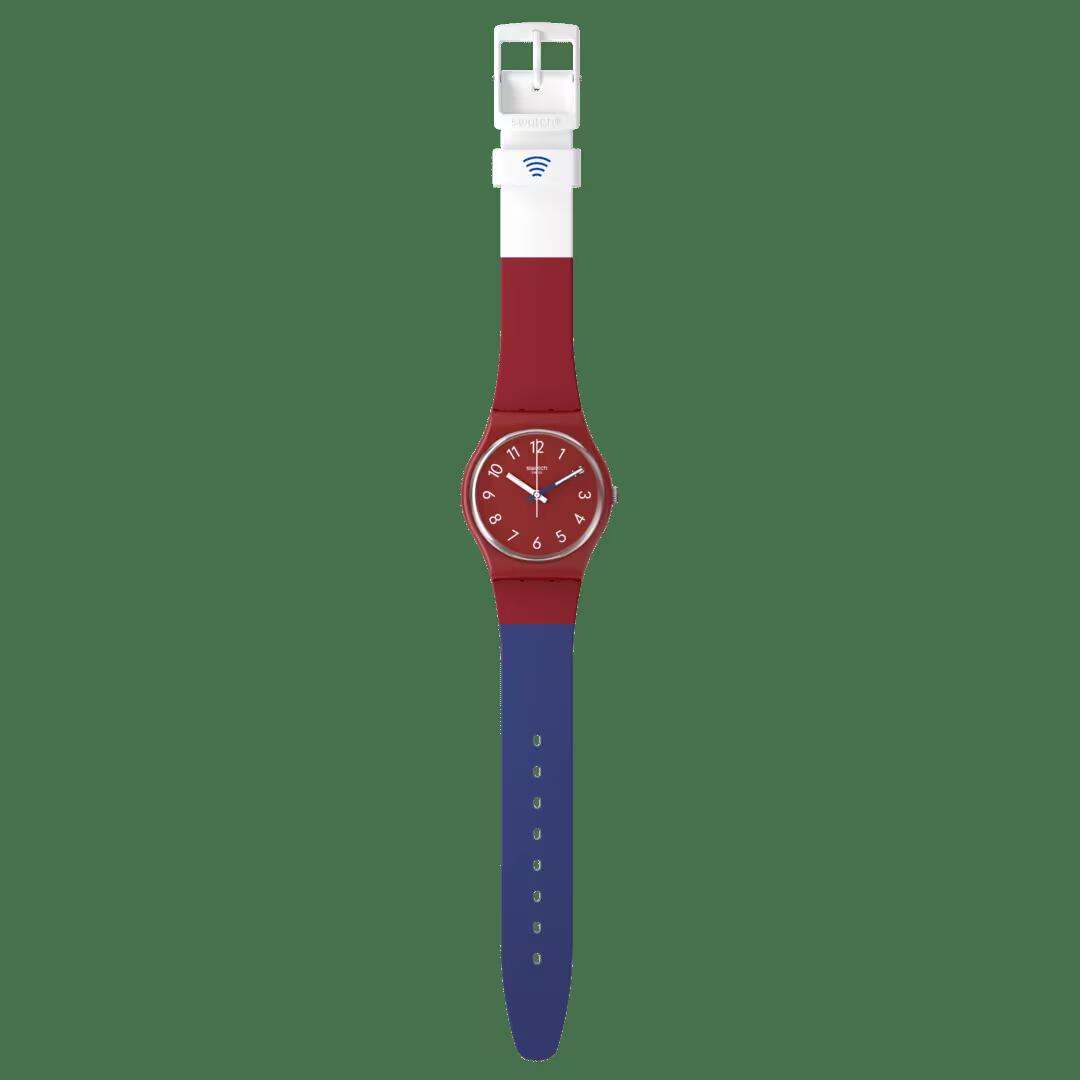 Часы Swatch Gent Biosourced Swatch Pay! SO28R109-5300 — это стильный и современный аксессуар, который идеально подходит для повседневного ношения. Они оснащены красным корпусом из биоматериала и силиконовым ремешком красно-сине-белого цвета. Эти часы поддерживают функцию SwatchPAY!. Циферблат покрыт органическим стеклом из хезалита, устойчивым к царапинам и ударам, что гарантирует долговечность изделия. Внутри часов установлен надежный кварцевый механизм, который обеспечивает точность хода. Эти часы водонепроницаемы до 30 метров, что позволяет не беспокоиться о случайных брызгах или дождевых каплях. Ремешок часов выполнен из силикона и имеет регулируемую длину, застежка классическая из алюминия. Swatch SO28R109-5300 — это идеальный выбор для тех, кто ценит сочетание стиля, комфорта и функциональности в одном аксессуаре.