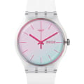 Часы Swatch SUOK713 — это стильный и современный аксессуар для тех, кто ценит лёгкость и комфорт. Часы идеально подойдут как для мужчин, так и для женщин. Розовый, зеленый и голубой циферблат этих часов, украшенный стеклом Swatch Solar Spectrum Glass, привлекает внимание. Белый ремешок и прозрачный корпус являются отличными дополнительными элементами. На циферблате присутствует окошко календаря в районе отметки 3 часа.  Водозащита 30 метров делает часы практичными для повседневного использования. Эти часы подойдут для повседневного ношения и станут ярким акцентом в вашем наряде.