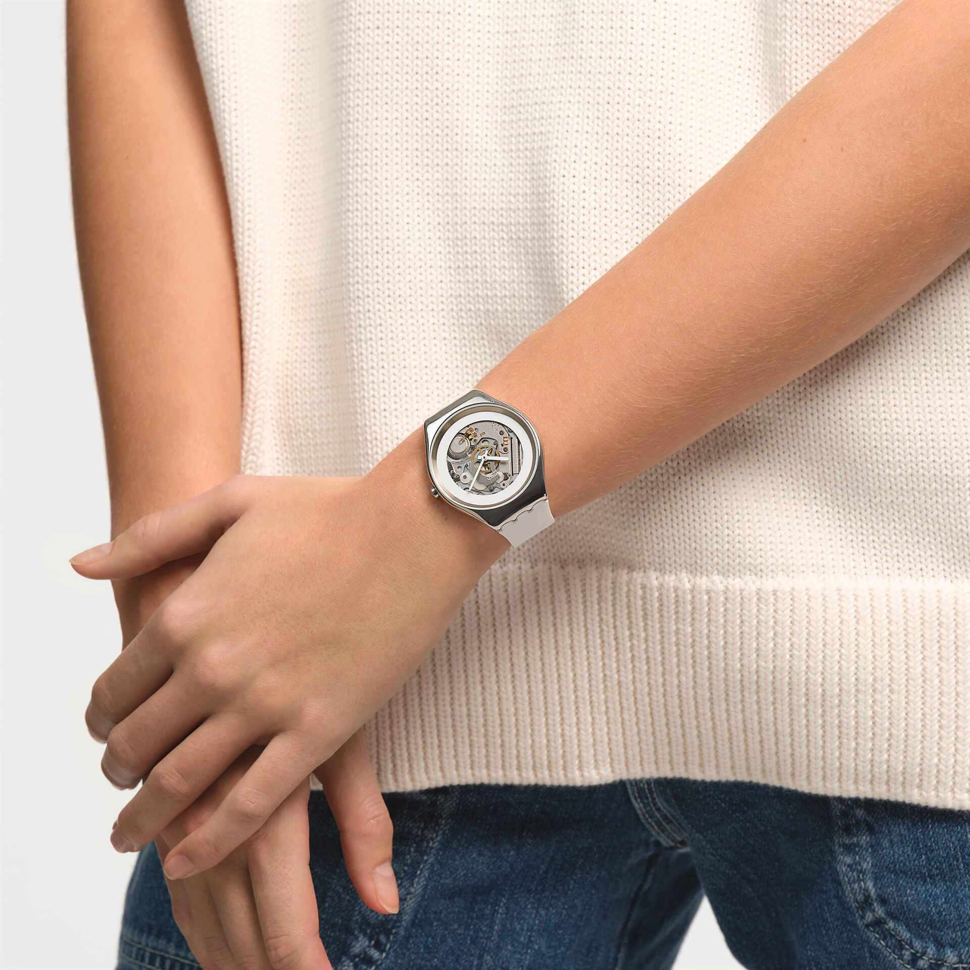 Часы Swatch SYXS138 — это стильный и современный аксессуар для тех, кто ценит лёгкость и комфорт. Часы идеально подойдут как для мужчин, так и для женщин. Эта невероятно тонкая модель часов имеет открытый циферблат с белым принтом, белые стрелки, минеральное стеклоМинеральное стеклоМинеральное стекло представляет собой искусственно выращенный минерал кварца. Такое стекло отличается особой устойчивостью к повреждениям и царапинам. Уступает по некоторым качествам сапфировому стеклу. и полированный корпус из нержавеющей стали. Эти стальные часы дополнены белым силиконовым ремешком с пряжкой и благодаря своему стилю подойдут абсолютно всем. Водозащита 30 метров делает часы практичными для повседневного использования. Эти часы подойдут для повседневного ношения и станут ярким акцентом в вашем наряде.