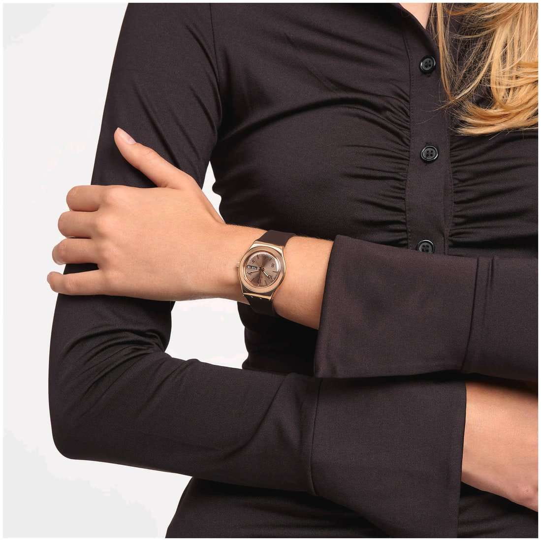Часы Swatch YLG701 — это стильный и современный аксессуар для тех, кто ценит лёгкость и комфорт. Модель этих часов с прочным коричневым ремешком из силикона, а также корпусом и застежкой с PVDPVDУльтратонкое покрытие наносится в технике вакуумного напыления, сочетает в себе нитрид титана особой прочности со слоем золота или оксида хрома. Несёт в себе декоративную или защитную функцию. покрытием цвета розового золота, выглядит очень аппетитно. Картину довершает циферблат того же оттенка. На часовую, минутную стрелки нанесено люминесцентное покрытиеЛюминесцентное покрытиеПозволяет считывать показания времени в темноте. Производители наносят на стрелки, часовые индексы, безель или поверхность циферблата светонакопительный состав, дающий холодное свечение., которое светится в темноте, создавая необычное изображение. На золотистом циферблате с радиальной полировкой также имеется окошко даты. Водозащита 30 метров делает часы практичными для повседневного использования. Эти часы подойдут для повседневного ношения и станут ярким акцентом в вашем наряде.