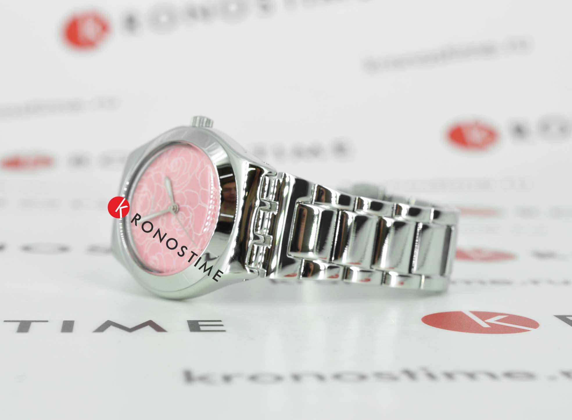 Браслет выполнен из нержавеющей стали и дополнен элегантной ювелирной застёжкой, которая надёжно фиксирует часы на запястье и придаёт образу завершённость.