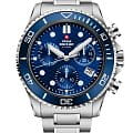 Часы Swiss Military SM34101.02 — это стильный мужской хронограф, который сочетает швейцарское качество и современный дизайн. Корпус диаметром 46 мм и браслет выполнены из нержавеющей стали, что обеспечивает прочность и элегантный внешний вид. Синий циферблат с чёткими часовыми метками и стрелками защищён сапфировым стекломСапфировое стеклоПрочный и надёжный материал из кристалла сапфира синтетического происхождения, характеризующийся особой твёрдостью и устойчивостью к царапинам и повреждениям., устойчивым к царапинам.