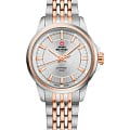 Браслет из нержавеющей стали с розово-золотым PVD-покрытиемPVDУльтратонкое покрытие наносится в технике вакуумного напыления, сочетает в себе нитрид титана особой прочности со слоем золота или оксида хрома. Несёт в себе декоративную или защитную функцию. и раскладной застёжкойРаскладная застёжкаТакой тип застёжки используется только на браслетах из металла. Она никогда не раскрывается полностью, происходит разделение на 2 и более частей. Раскладывающая застёжка снизит вероятность потери часов к минимуму. обеспечивает комфортное ношение и надёжную фиксацию. Водозащита до 10 ATM делает часы подходящими для плавания и других водных активностей. Максимальный обхват запястья составляет 180 мм.
