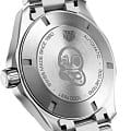 Автоматические мужские часы TAG Heuer Aquaracer Calibre 5 Automatic WAY201A.BA0927, механический механизм (автоматический калибр) с высокой точностью. Сапфировое стеклоСапфировое стеклоПрочный и надёжный материал из кристалла сапфира синтетического происхождения, характеризующийся особой твёрдостью и устойчивостью к царапинам и повреждениям. устойчивое к появлению царапин, обладающее высокой прозрачностью. Класс водозащиты: 300 метров, позволит плавать, нырять и заниматься другими водными видами спорта. Корпус часов изготовлен из стали. Стальной браслет на раскладной застёжкеРаскладная застёжкаТакой тип застёжки используется только на браслетах из металла. Она никогда не раскрывается полностью, происходит разделение на 2 и более частей. Раскладывающая застёжка снизит вероятность потери часов к минимуму.. В механизме 25 или 26 камней в зависимости от исполнения, частота 28800 полуколебаний в час. Запас хода 38 часов. Окошко даты с увеличительным стеклом. Керамический безельБезельВнешний ободок, закрепляющий стекло. В спортивных часах так называется поворотное кольцо с делениями на циферблате, выполняет роль таймера – замеряет отрезки времени на шкале. Неподвижный безель – элемент декора. Однонаправленно вращающийся безель на дайверских часах позволяет фиксировать моменты погружения и выныривания на поверхность. вращается в одном направлении. Завинчивающаяся заводная головка с защитой. Завинчивающаяся задняя крышка. Накладные полированные граненые индексы с родиевым покрытием. Стрелки и метки с люминесцентным покрытиемЛюминесцентное покрытиеПозволяет считывать показания времени в темноте. Производители наносят на стрелки, часовые индексы, безель или поверхность циферблата светонакопительный состав, дающий холодное свечение..