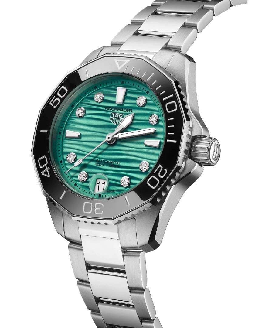 Яркий бирюзовый цвет циферблата, напоминающий об безмятежных лагунах, создает атмосферу для профессионального 300-метрового водонепроницаемого TAG Heuer Aquaracer. Разработанный для того, чтобы выдерживать экстремальное давление, этот дайвер готов к погружению....