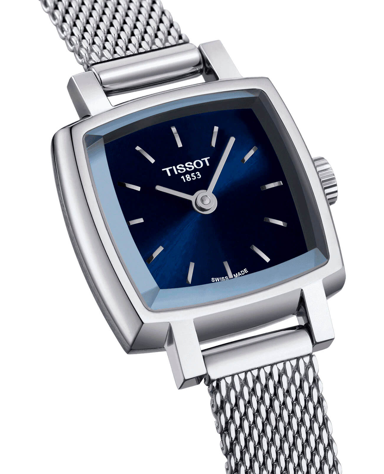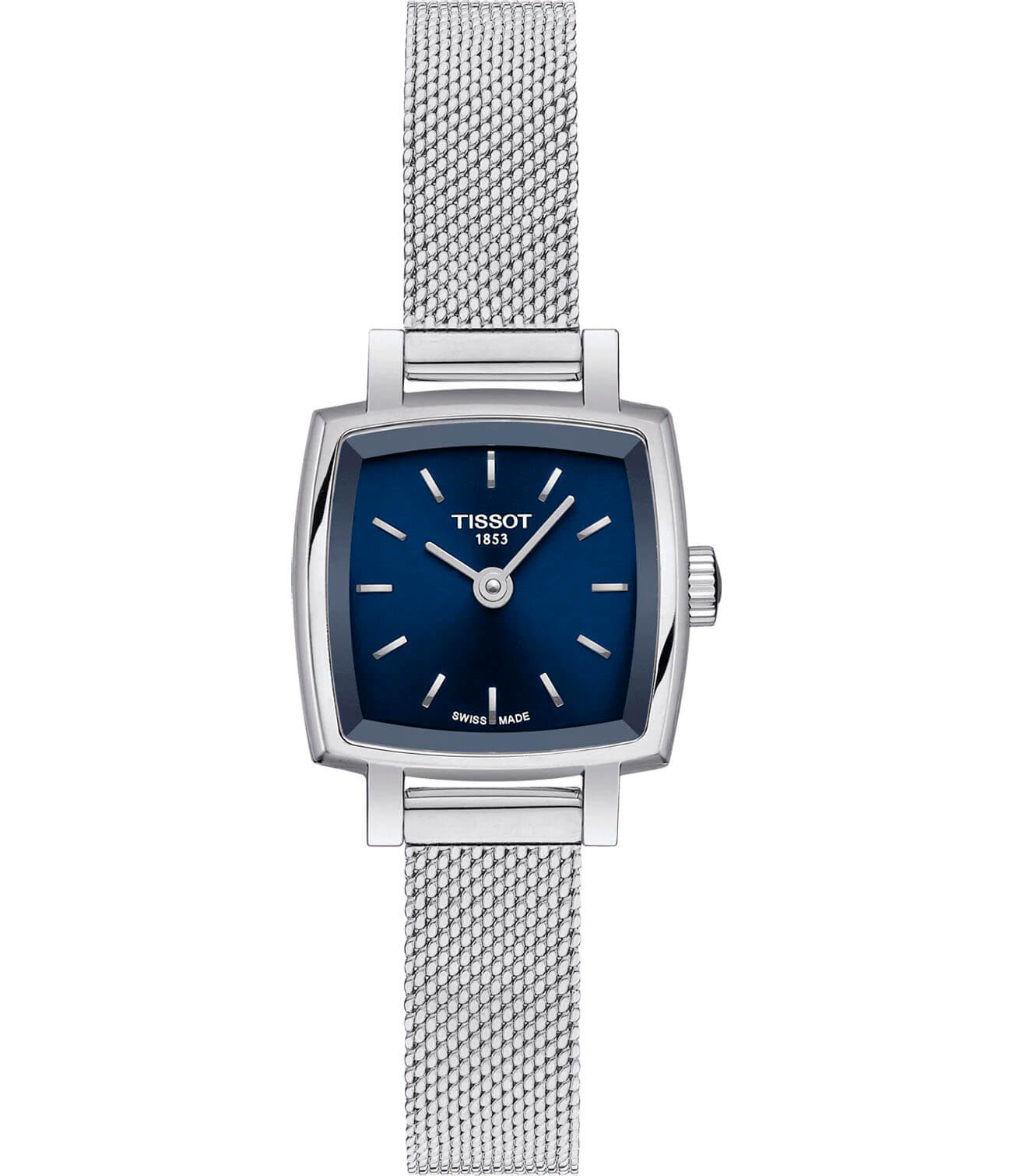 Tissot Lovely Square T058.109.11.041.00 – изящные женские часы, вдохновлённые элегантностью моделей 1960-х годов. Корпус размером 20 × 20 мм выполнен из нержавеющей стали 316L, что обеспечивает прочность и долговечность. Синий циферблат с серебристыми метками и стрелками придаёт часам утончённый вид, а его поверхность защищена сапфировым стекломСапфировое стеклоПрочный и надёжный материал из кристалла сапфира синтетического происхождения, характеризующийся особой твёрдостью и устойчивостью к царапинам и повреждениям., устойчивым к царапинам.