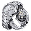 Серебристый блеск стального браслета гармонично сочетается с перламутровым циферблатом. Он инкрустирован бриллиантами, соответствующими всем требованиям Кимберлийского процесса. Часы оснащены калибром Powermatic 80Powermatic 80Эксклюзивный калибр от швейцарской компании ETA с увеличенным запасом хода до 80 часов за счёт удлинённой заводной пружины. Характеризуется улучшенной системой спуска со сниженным трением. с увеличенным запасом хода. Надёжное сапфировое стекло. Прозрачная задняя крышка с узором. Водонепроницаемость 10 бар. . Отображение даты. Габариты: 33 x 33 x 9,8 мм.
