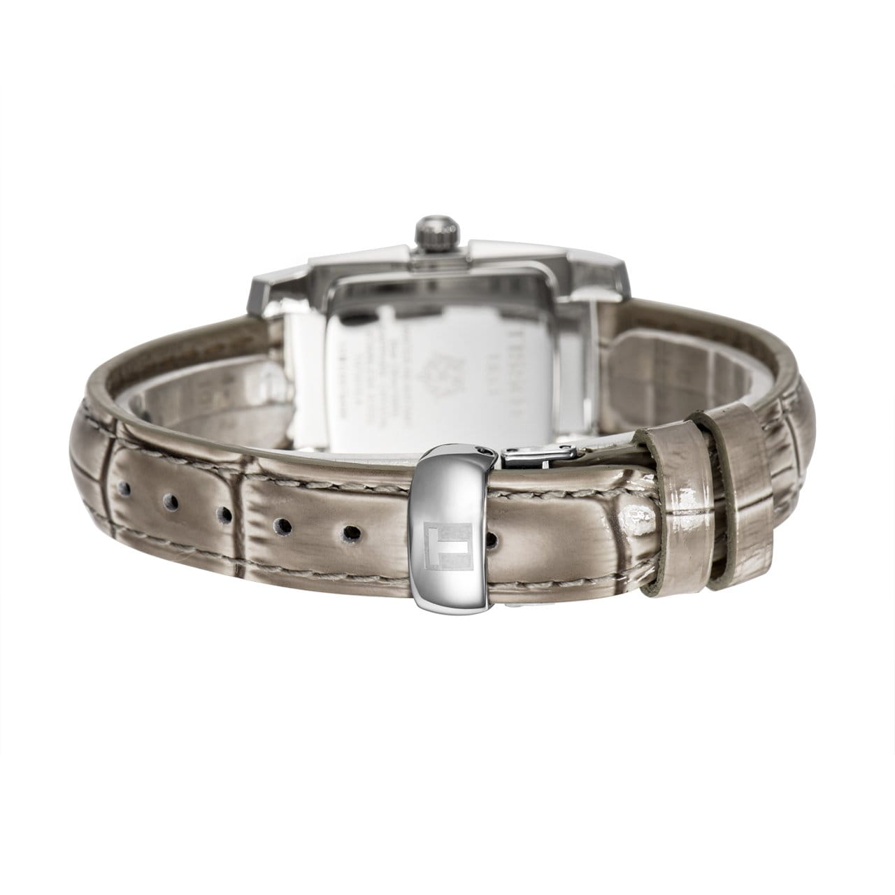 TISSOT T0733101611601 T-Trend T10 Quartz - женские кварцевые наручные часы Корпус этих часов небольшого размера (254 мм) и выполнен из нержавеющей стали L316 металлического цвета Модель TISSOT T0733101611601 T-Trend T10 Quartz имеет устойчивое к царапинам сапфировое стекло, ремешок из натуральной кожи черного цвета, белый циферблат Циферблат украшен 6 бриллиантами Калибр механизма: ETA F03111 Класс водозащиты: 30 м / 3 АТМ (защита от брызг и случайных капель) Дополнительные функции и особенности: нет Полная заводская комплектация TISSOT: оригинальные часы, фирменная коробка, инструкция, сервисная книжка, роман о часовой фабрике, миникаталог, замшевый фирменный чехол черного цвета для хранения и/или переноски часов, кассовый и товарный чеки Международная гарантия 2 года Производство и сборка: Швейцария