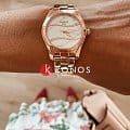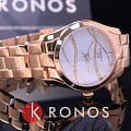 Минималистичный перламутровый циферблат с узором инкрустирован бриллиантами, имеющими законное происхождение. На светлом фоне идеально смотрятся тонкие стрелки в виде лепестков. Часы имеют PVD-покрытиеPVDУльтратонкое покрытие наносится в технике вакуумного напыления, сочетает в себе нитрид титана особой прочности со слоем золота или оксида хрома. Несёт в себе декоративную или защитную функцию. цвета розового золота. Внутри корпуса находится кварцевый механизм ETA F04.111 с высокой точностью хода. Сапфировое стекло. . Функция EOLEOLПредставляет собой систему, уведомляющую владельца часов о необходимости замены элемента питания. За 2 недели до полного разряда батарейки секундная стрелка перестаёт ходить чётко и начинает перепрыгивать на 3-4 деления.. Габариты: 30 x 30 x 8,7 мм.