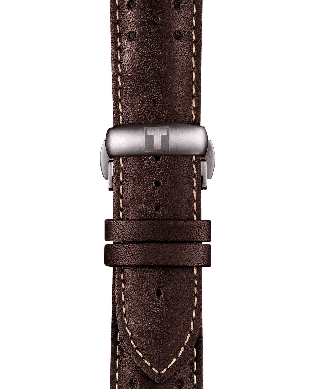 Циферблат цвета слоновой кости с мини-счётчиками хронографаХронографФункция позволяет измерять отрезки времени с особой точностью: часы, минуты, секунды. Верным признаком хронографа является наличие на циферблате 3 дополнительных окошек-счётчиков. отличается внушительным диаметром (45 мм), такое исполнение стильно смотрится на руке. Наручные часы оснащены системой автоподзавода, работая за счёт популярного калибра ETA C01.211 с 45-часовым запасом хода. Работа механизма отлично просматривается сквозь прозрачную заднюю крышку. Сапфировое стекло. БезельБезельВнешний ободок, закрепляющий стекло. В спортивных часах так называется поворотное кольцо с делениями на циферблате, выполняет роль таймера – замеряет отрезки времени на шкале. Неподвижный безель – элемент декора. Однонаправленно вращающийся безель на дайверских часах позволяет фиксировать моменты погружения и выныривания на поверхность. со шкалой тахиметраТахиметрРазмеченная шкала, располагается на ободке или безеле часов. Тахиметр позволяет рассчитать скорость на определённом участке пути, расстояние измеряется в километрах или милях.. Перфорированный кожаный ремешок. Люминесцентная подсветкаЛюминесцентное покрытиеПозволяет считывать показания времени в темноте. Производители наносят на стрелки, часовые индексы, безель или поверхность циферблата светонакопительный состав, дающий холодное свечение.. Секундомер, отображение даты. . Габариты: 45 x 45 x 14,8 мм.