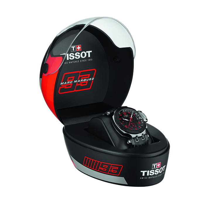 Мужские наручные часы из лимитированной коллекции T-Race Limited Edition (всего 3993 экземпляра) выпущены в честь мотогонщика Марка Маркеса - семикратного чемпиона.