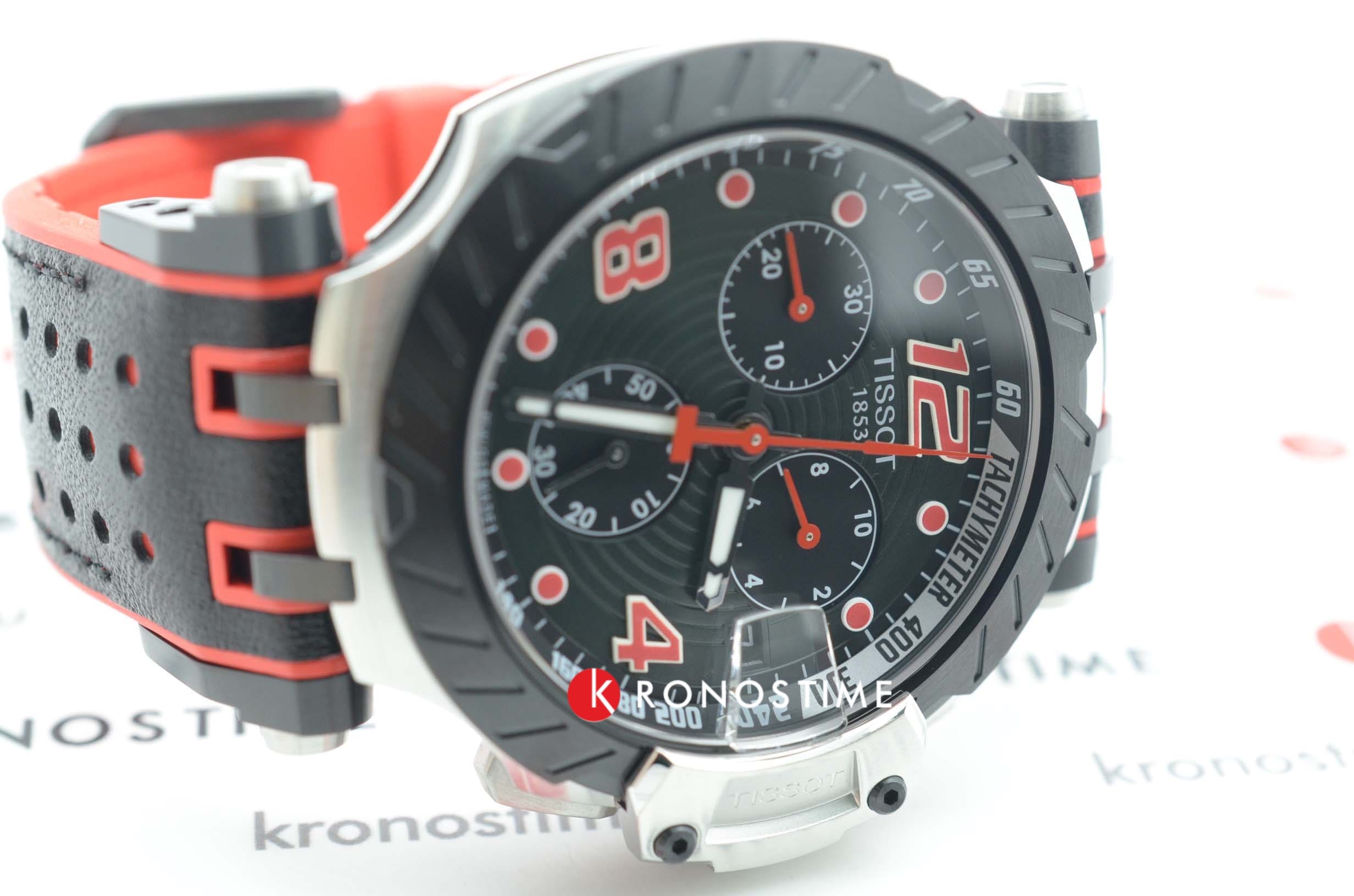 Эпатажные мужские часы из коллекции T-Race отражают динамику мотогоночных соревнований и чемпионский характер. Оригинальный аксессуар выполнен в спортивном стиле, характерно наличие крупных деталей, яркая расцветка, отсылка к деталям гоночных мотоциклов. Задняя крышка корпуса сделана в виде колеса, безельБезельВнешний ободок, закрепляющий стекло. В спортивных часах так называется поворотное кольцо с делениями на циферблате, выполняет роль таймера – замеряет отрезки времени на шкале. Неподвижный безель – элемент декора. Однонаправленно вращающийся безель на дайверских часах позволяет фиксировать моменты погружения и выныривания на поверхность. напоминает тормозную колодку. Наручные часы оснащены кварцевым механизмом швейцарского производства ETA G10.212. ХронографХронографФункция позволяет измерять отрезки времени с особой точностью: часы, минуты, секунды. Верным признаком хронографа является наличие на циферблате 3 дополнительных окошек-счётчиков. позволяет измерять показатели с особой точностью. Чёрное PVD-покрытиеPVDУльтратонкое покрытие наносится в технике вакуумного напыления, сочетает в себе нитрид титана особой прочности со слоем золота или оксида хрома. Несёт в себе декоративную или защитную функцию. корпуса. Сапфировое стекло. Водостойкость при давлении 10 бар. Секундомер, индикация даты. Габариты: 43 x 46,7 x 12,7 мм. Производство и сборка: Швейцария.
