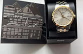 Классическая модель с корпусом и браслетом из нержавеющей стали. Сдержанный внешний вид позволяет носить часы хоть каждый день. Внутри находится механизм ETA F06.115. Сапфировое стеклоСапфировое стеклоПрочный и надёжный материал из кристалла сапфира синтетического происхождения, характеризующийся особой твёрдостью и устойчивостью к царапинам и повреждениям.. Застежка бабочка с кнопкамиЗастёжка "бабочка"Такой вид застёжки дополняется предохранителями, помогающими избежать случайного раскрытия браслета. Обладают изящным исполнением. . EOLEOLПредставляет собой систему, уведомляющую владельца часов о необходимости замены элемента питания. За 2 недели до полного разряда батарейки секундная стрелка перестаёт ходить чётко и начинает перепрыгивать на 3-4 деления.. Водостойкость 50 метров. Индикация даты. Габариты: 40 x 40 x 11,5 мм.