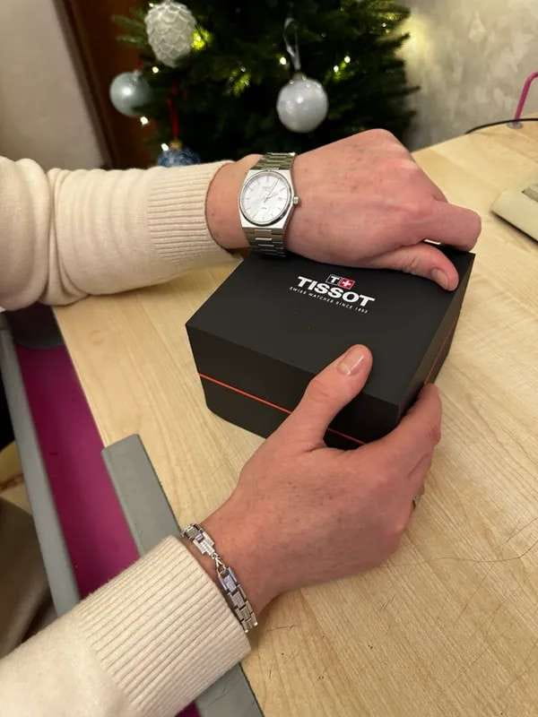 Женские наручные часы Tissot PRX T137.210.11.111.00 сочетают в себе элегантный дизайн и высокое качество исполнения. Модель обладает тонким корпусом диаметром 35 мм, изготовленным из нержавеющей стали, что обеспечивает отличную устойчивость к внешним воздействиям. Браслет выполнен из нержавеющей стали с интегрированным дизайном на застёжка «бабочка» с кнопкамиЗастёжка "бабочка"Такой вид застёжки дополняется предохранителями, помогающими избежать случайного раскрытия браслета. Обладают изящным исполнением. , гарантирующей комфортное ношение и удобство использования. Циферблат выполнен из натурального перламутра, который уникален для каждой модели, добавляя особую изысканность каждому экземпляру. Для защиты перламутрового циферблата используется сапфировое стеклоСапфировое стеклоПрочный и надёжный материал из кристалла сапфира синтетического происхождения, характеризующийся особой твёрдостью и устойчивостью к царапинам и повреждениям. с антибликовым покрытиемАнтибликовое покрытиеСлой оксида металла в 0,13-0,3 микрон, благодаря которому стекло часов не бликует и не отражает свет. Антибликовое покрытие уменьшает отражение света в 10 раз, обеспечивая отличную читаемость показателей циферблата., обеспечивающее превосходную защиту от царапин и четкое чтение времени при любых условиях освещения. Стрелки с люминесцентным покрытиемЛюминесцентное покрытиеПозволяет считывать показания времени в темноте. Производители наносят на стрелки, часовые индексы, безель или поверхность циферблата светонакопительный состав, дающий холодное свечение.. Часы работают на швейцарском кварцевом механизме, что гарантирует точное время без необходимости подзаводки. Водонепроницаемость данных моделей составляет 10 атмосфер (100 метров), что позволяет использовать их при плавании и других водных видах спорта, однако не рекомендуется для глубоководного дайвинга. Tissot PRX — это часы для тех, кто ценит стильный ретро-дизайн и современные технологии, подходящие как для повседневного использования, так и для особых случаев.