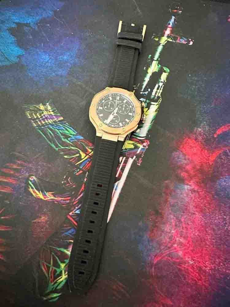 Стильное оформление корпуса выгодно подчеркнет повседневный образ. Высокая точность хода обусловлена наличием швейцарского кварцевого калибра ETA G10.212. Сапфировое стеклоСапфировое стеклоПрочный и надёжный материал из кристалла сапфира синтетического происхождения, характеризующийся особой твёрдостью и устойчивостью к царапинам и повреждениям. с антибликовым покрытием. Синтетический ремешок. Люминесцентная подсветкаЛюминесцентное покрытиеПозволяет считывать показания времени в темноте. Производители наносят на стрелки, часовые индексы, безель или поверхность циферблата светонакопительный состав, дающий холодное свечение. стрелок и меток. Корпус из нержавеющей стали с PVD-покрытиемPVDУльтратонкое покрытие наносится в технике вакуумного напыления, сочетает в себе нитрид титана особой прочности со слоем золота или оксида хрома. Несёт в себе декоративную или защитную функцию.. Водостойкость 100 метров. Секундомер, тахиметрТахиметрРазмеченная шкала, располагается на ободке или безеле часов. Тахиметр позволяет рассчитать скорость на определённом участке пути, расстояние измеряется в километрах или милях., индикация числа. Габариты: 45 x 45 x 11,8 мм.