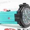 Tissot T-Race MotoGP Quartz Chronograph T141.417.37.051.01 – серия мужских часов, посвященная сотрудничеству Tissot с чемпионатом MotoGP™. Корпус диаметром 45 мм выполнен из нержавеющей стали 316L и корпус с PVD-покрытиемPVDУльтратонкое покрытие наносится в технике вакуумного напыления, сочетает в себе нитрид титана особой прочности со слоем золота или оксида хрома. Несёт в себе декоративную или защитную функцию. в чёрном цвете, придающим часам современный и спортивный вид. Глубокий циферблат защищён сапфировым стекломСапфировое стеклоПрочный и надёжный материал из кристалла сапфира синтетического происхождения, характеризующийся особой твёрдостью и устойчивостью к царапинам и повреждениям. с антибликовым покрытиемАнтибликовое покрытиеСлой оксида металла в 0,13-0,3 микрон, благодаря которому стекло часов не бликует и не отражает свет. Антибликовое покрытие уменьшает отражение света в 10 раз, обеспечивая отличную читаемость показателей циферблата., обеспечивающим устойчивость к царапинам и отличную читаемость в любых условиях. Задняя крышка корпуса украшена гравировкой, подчеркивающей уникальность модели. Часы оснащены швейцарским кварцевым механизмом, обеспечивающим высокую точность хода. Функциональность модели включает хронографХронографФункция позволяет измерять отрезки времени с особой точностью: часы, минуты, секунды. Верным признаком хронографа является наличие на циферблате 3 дополнительных окошек-счётчиков. с центральной секундной стрелкой, 30-минутным и 1/10-секундным счетчиками, а также функциями ADD и сплит-хронографаСплит-хронографИспользуется для измерения продолжительности нескольких временных отрезков, начинающихся одновременно, а заканчивающихся в разное время.. Индексы и стрелки покрыты люминесцентным покрытиемЛюминесцентное покрытиеПозволяет считывать показания времени в темноте. Производители наносят на стрелки, часовые индексы, безель или поверхность циферблата светонакопительный состав, дающий холодное свечение. Super-LumiNova®, обеспечивающим отличную видимость в темное время суток. Бирюзовый силиконовый ремешок с классической застёжкой обеспечивает комфортное ношение и надёжную фиксацию на запястье. Водозащита до 100 метров (10 бар) позволяет использовать часы во время плавания и других водных видов спорта. Эта модель идеально подходит для поклонников MotoGP™ и ценителей высококачественных швейцарских часов с уникальным дизайном и расширенной функциональностью.