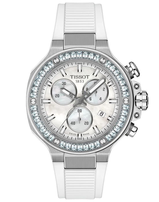 Tissot T-Race Chronograph 38mm— выразительные спортивные часы, созданные для динамичного стиля жизни. Корпус диаметром 38 мм выполнен в современном дизайне с акцентом на мощные линии с PVD-покрытиемPVDУльтратонкое покрытие наносится в технике вакуумного напыления, сочетает в себе нитрид титана особой прочности со слоем золота или оксида хрома. Несёт в себе декоративную или защитную функцию., подчеркивающие характер коллекции T-Race.
