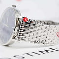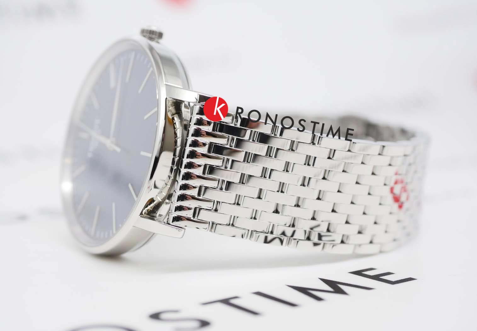 Кварцевый механизм с высокой точностью. Сапфировое стеклоСапфировое стеклоПрочный и надёжный материал из кристалла сапфира синтетического происхождения, характеризующийся особой твёрдостью и устойчивостью к царапинам и повреждениям. устойчивое к появлению царапин, обладающее высокой прозрачностью. Стрелки с люминесцентным покрытиемЛюминесцентное покрытиеПозволяет считывать показания времени в темноте. Производители наносят на стрелки, часовые индексы, безель или поверхность циферблата светонакопительный состав, дающий холодное свечение.. Класс водозащиты: 50 метров, позволит защитить корпус от случайных брызг или капель дождя. Корпус часов изготовлен из нержавеющей стали. Браслет с застёжкой «бабочка» с кнопкамиЗастёжка "бабочка"Такой вид застёжки дополняется предохранителями, помогающими избежать случайного раскрытия браслета. Обладают изящным исполнением. .