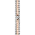 Водозащита до 100 метров (10 бар) позволяет использовать часы в повседневной жизни, включая плавание. Браслет из нержавеющей стали с покрытием PVD розового золота оснащён застёжкой бабочкаЗастёжка "бабочка"Такой вид застёжки дополняется предохранителями, помогающими избежать случайного раскрытия браслета. Обладают изящным исполнением. с кнопками и системой быстрой замены, обеспечивающей надёжную фиксацию и комфортное ношение.