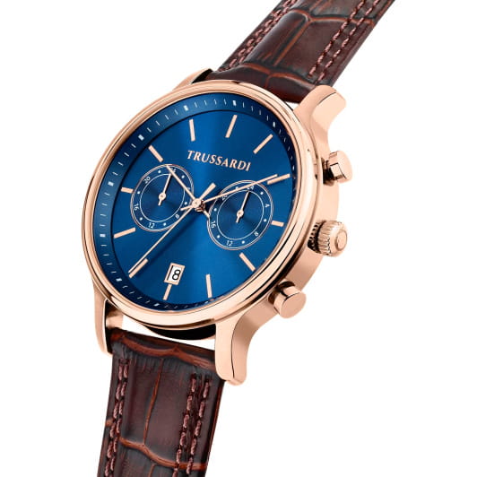 Итальянские мужские часы Trussardi T-Inedito R2451174001 - это стильный мужской аксессуар, который сочетает элегантный дизайн и практичность. Корпус выполнен из нержавеющей стали  с IP-покрытиемIP-покрытиеМетод ионного напыления. Демонстрирует повышенную устойчивость к истиранию, окислению и химическим веществам. Под воздействием высокого давления и температуры около 1500°C молекулы металла надёжно соединяются с частицами корпуса часов., что обеспечивает долговечность и утончённый внешний вид. Надежное минеральное стеклоМинеральное стеклоМинеральное стекло представляет собой искусственно выращенный минерал кварца. Такое стекло отличается особой устойчивостью к повреждениям и царапинам. Уступает по некоторым качествам сапфировому стеклу. защищает циферблат от царапин и обеспечивает долговечность. Модель оснащена кварцевым механизмом, обеспечивающим высокую точность хода. Кожаный ремень со стандартной застежкой обеспечивает комфортное ношение. Водозащита 50 метров позволит защитить корпус от случайных брызг или капель дождя. Вынесенный циферблат с 24-х часовым указателем времени, второй часовой пояс в 24-х часовом формате.Окошко даты находится в положении 6 часов. Эта модель – отличный выбор для тех, кто ищет сочетание стиля, качества и функциональности. Часы станут не только полезным аксессуаром, но и выразительным элементом вашего имиджа.