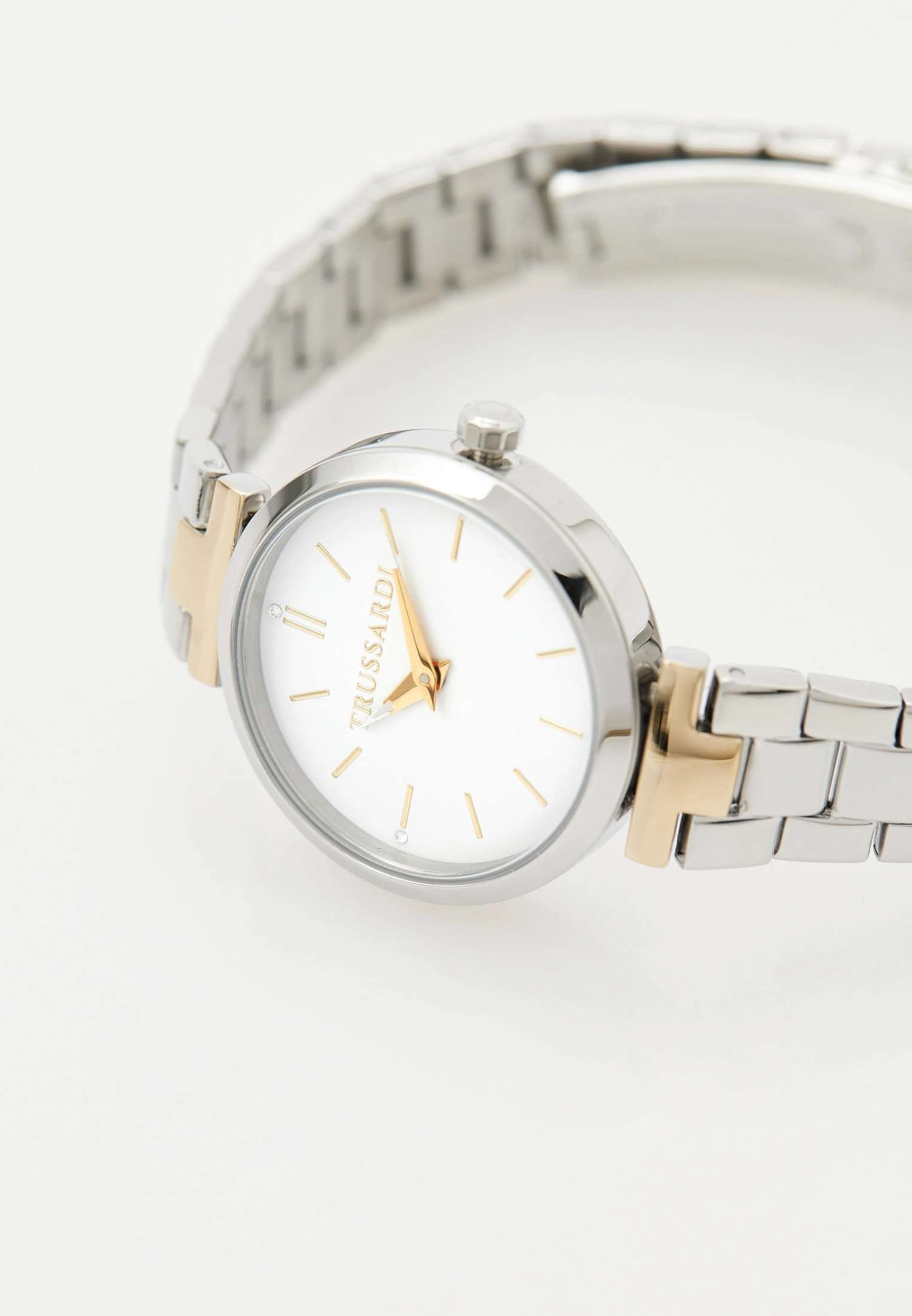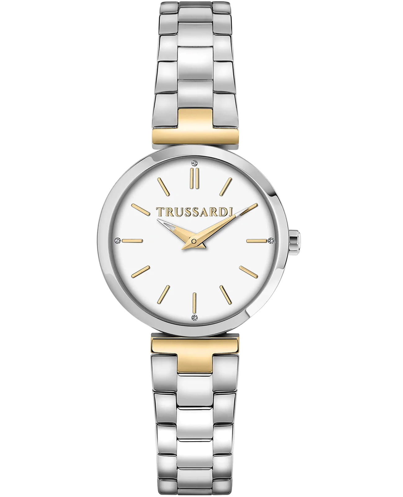Итальянские женские часы Trussardi Loud R2453164502 - это стильный женский аксессуар, который сочетает элегантный дизайн и практичность. Корпус выполнен из нержавеющей стали, что обеспечивает долговечность и утончённый внешний вид. Надежное минеральное стеклоМинеральное стеклоМинеральное стекло представляет собой искусственно выращенный минерал кварца. Такое стекло отличается особой устойчивостью к повреждениям и царапинам. Уступает по некоторым качествам сапфировому стеклу. защищает циферблат от царапин и обеспечивает долговечность. Модель оснащена кварцевым механизмом, обеспечивающим высокую точность хода. Браслет из нержавеющей стали с частичным IP-покрытиемIP-покрытиеМетод ионного напыления. Демонстрирует повышенную устойчивость к истиранию, окислению и химическим веществам. Под воздействием высокого давления и температуры около 1500°C молекулы металла надёжно соединяются с частицами корпуса часов. на раскладной застёжкеРаскладная застёжкаТакой тип застёжки используется только на браслетах из металла. Она никогда не раскрывается полностью, происходит разделение на 2 и более частей. Раскладывающая застёжка снизит вероятность потери часов к минимуму. обеспечивает комфортное ношение. Стрелки оснащены люминесцентным покрытиемЛюминесцентное покрытиеПозволяет считывать показания времени в темноте. Производители наносят на стрелки, часовые индексы, безель или поверхность циферблата светонакопительный состав, дающий холодное свечение., обеспечивающим отличную видимость даже при слабом освещении. Водозащита 50 метров позволит защитить корпус от случайных брызг или капель дождя. Эта модель – отличный выбор для тех, кто ищет сочетание стиля, качества и функциональности. Часы станут не только полезным аксессуаром, но и выразительным элементом вашего имиджа.