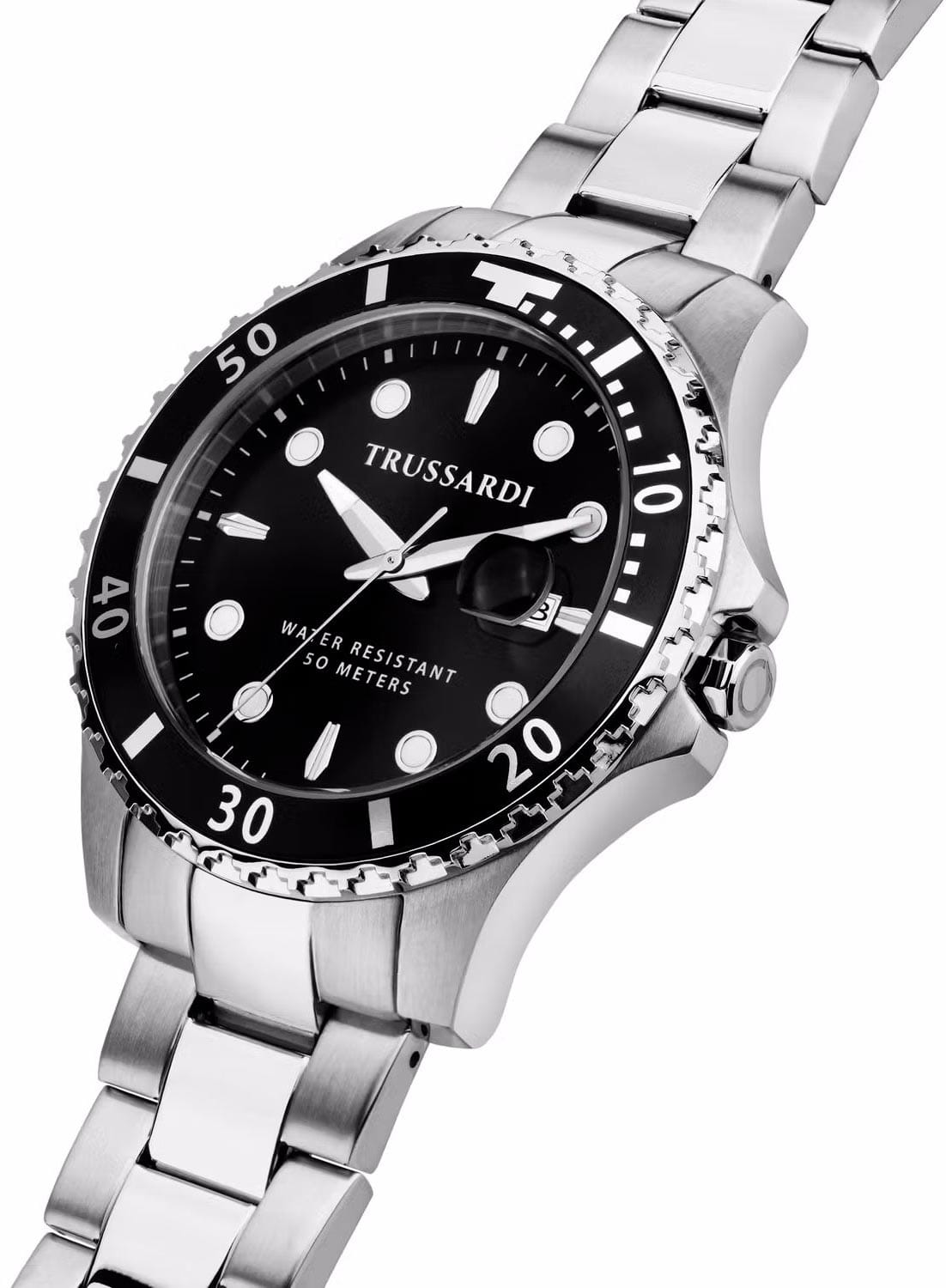 Итальянские мужские часы Trussardi City Life R2453169005 - это стильный мужской аксессуар, который сочетает элегантный дизайн и практичность. Корпус выполнен из нержавеющей стали с безелемБезельВнешний ободок, закрепляющий стекло. В спортивных часах так называется поворотное кольцо с делениями на циферблате, выполняет роль таймера – замеряет отрезки времени на шкале. Неподвижный безель – элемент декора. Однонаправленно вращающийся безель на дайверских часах позволяет фиксировать моменты погружения и выныривания на поверхность. с IP-покрытиемIP-покрытиеМетод ионного напыления. Демонстрирует повышенную устойчивость к истиранию, окислению и химическим веществам. Под воздействием высокого давления и температуры около 1500°C молекулы металла надёжно соединяются с частицами корпуса часов., что обеспечивает долговечность и утончённый внешний вид. Надежное минеральное стеклоМинеральное стеклоМинеральное стекло представляет собой искусственно выращенный минерал кварца. Такое стекло отличается особой устойчивостью к повреждениям и царапинам. Уступает по некоторым качествам сапфировому стеклу. защищает циферблат от царапин и обеспечивает долговечность. Модель оснащена кварцевым механизмом, обеспечивающим высокую точность хода. Браслет из нержавеющей стали с раскладной застёжкойРаскладная застёжкаТакой тип застёжки используется только на браслетах из металла. Она никогда не раскрывается полностью, происходит разделение на 2 и более частей. Раскладывающая застёжка снизит вероятность потери часов к минимуму. обеспечивает комфортное ношение. Водозащита 50 метров позволит защитить корпус от случайных брызг или капель дождя. Окошко даты в положении 3 часов. Стрелки метки оснащены люминесцентным покрытиемЛюминесцентное покрытиеПозволяет считывать показания времени в темноте. Производители наносят на стрелки, часовые индексы, безель или поверхность циферблата светонакопительный состав, дающий холодное свечение., обеспечивающим отличную видимость даже при слабом освещении. Эта модель – отличный выбор для тех, кто ищет сочетание стиля, качества и функциональности. Часы станут не только полезным аксессуаром, но и выразительным элементом вашего имиджа.