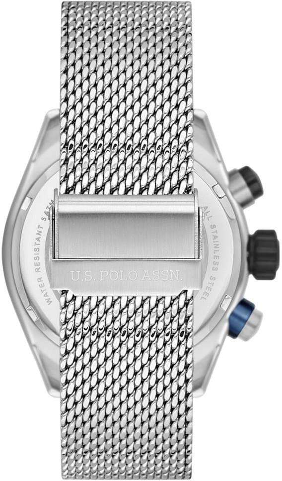 Мужские часы U.S. Polo Assn. Crossing USPA1025-02 кварцевый механизм с высокой точностью. Минеральное стеклоМинеральное стеклоМинеральное стекло представляет собой искусственно выращенный минерал кварца. Такое стекло отличается особой устойчивостью к повреждениям и царапинам. Уступает по некоторым качествам сапфировому стеклу. устойчивое к появлению царапин, обладающее высокой прозрачностью. Корпус и браслет изготовлены из нержавеющей стали. На циферблате три дополнительных индикатора. БезельБезельВнешний ободок, закрепляющий стекло. В спортивных часах так называется поворотное кольцо с делениями на циферблате, выполняет роль таймера – замеряет отрезки времени на шкале. Неподвижный безель – элемент декора. Однонаправленно вращающийся безель на дайверских часах позволяет фиксировать моменты погружения и выныривания на поверхность. из нержавеющей стали с IP-покрытиемIP-покрытиеМетод ионного напыления. Демонстрирует повышенную устойчивость к истиранию, окислению и химическим веществам. Под воздействием высокого давления и температуры около 1500°C молекулы металла надёжно соединяются с частицами корпуса часов.. Центральные часовая, минутная и секундная стрелки. Индикация даты и дня недели. 12/24х часовой формат времени. Стрелки с люминесцентным покрытиемЛюминесцентное покрытиеПозволяет считывать показания времени в темноте. Производители наносят на стрелки, часовые индексы, безель или поверхность циферблата светонакопительный состав, дающий холодное свечение.. Класс водозащиты: 50 метров, позволит защитить корпус от случайных брызг или капель дождя.Стальной браслет миланского плетения на раскладном замкеРаскладной замокДанный вариант застежки используется только на часах с металлическим браслетом. Отличительная особенность такого крепления в том, что длина браслета становится универсальной и вы можете самостоятельно отрегулировать нужный вам размер – застежка просто двигается по браслету часов..
