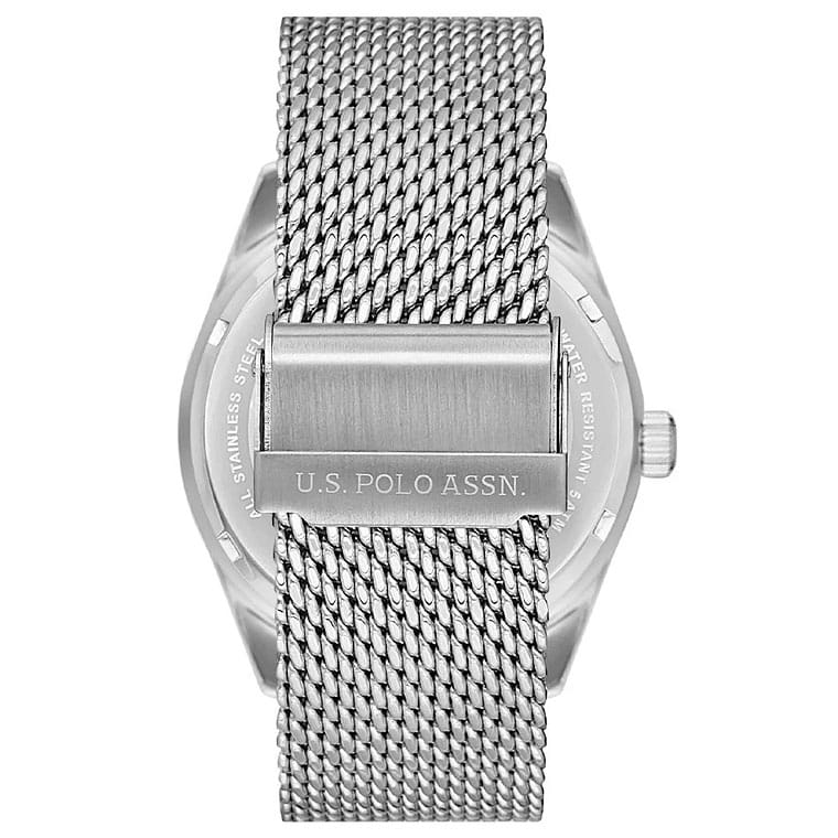Мужские элегантные американские часы U.S. Polo Assn. Fundamental USPA1067-05, кварцевый механизм с высокой точностью. Минеральное стеклоМинеральное стеклоМинеральное стекло представляет собой искусственно выращенный минерал кварца. Такое стекло отличается особой устойчивостью к повреждениям и царапинам. Уступает по некоторым качествам сапфировому стеклу. устойчивое к появлению царапин, обладающее высокой прозрачностью. Изысканный корпус изготовлен из нержавеющей стали. Центральные часовая, минутная и секундная стрелки. Окошко даты находится в положении 3 часа. Часы оснащены люминесцентным покрытиемЛюминесцентное покрытиеПозволяет считывать показания времени в темноте. Производители наносят на стрелки, часовые индексы, безель или поверхность циферблата светонакопительный состав, дающий холодное свечение., обеспечивающим хорошую читаемость в темноте. Класс водозащиты: 50 метров, позволит защитить корпус от случайных брызг или капель дождя. Стальной браслет миланского плетения на раскладном замкеРаскладной замокДанный вариант застежки используется только на часах с металлическим браслетом. Отличительная особенность такого крепления в том, что длина браслета становится универсальной и вы можете самостоятельно отрегулировать нужный вам размер – застежка просто двигается по браслету часов. обеспечивает комфорт и удобство в использовании, добавляя завершающий штрих к этому стильному и высокоэффективному аксессуару. Это практичный и стильный инструмент для активной повседневности, объединяющий точный механизм и удобство.