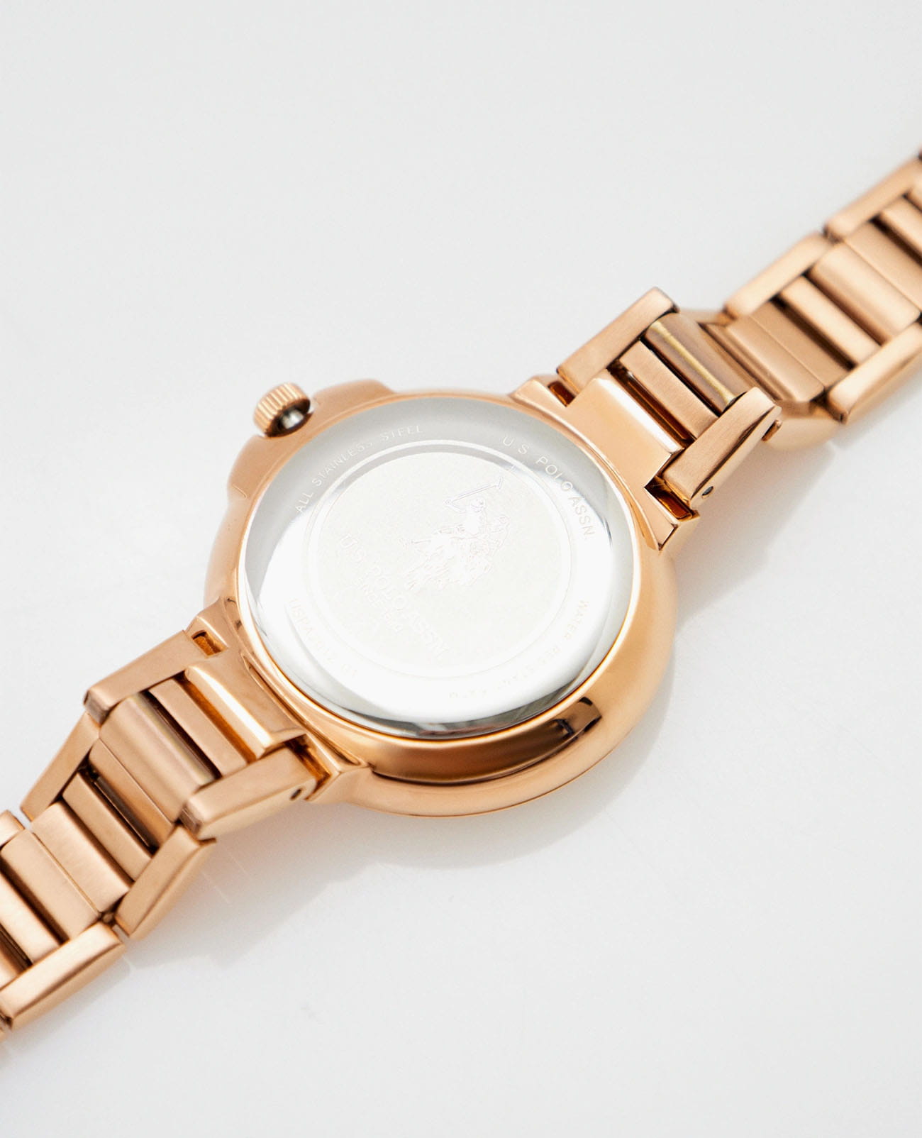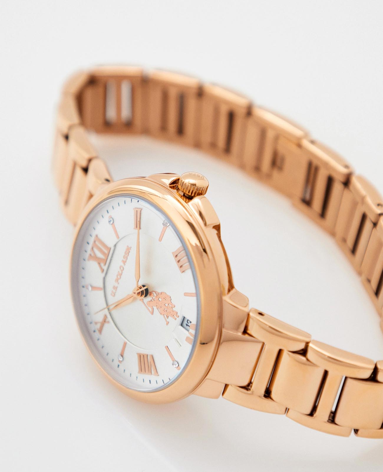 Женские часы U.S. Polo Assn Stile USPA2012-01 кварцевый механизм с высокой точностью. Минеральное стеклоМинеральное стеклоМинеральное стекло представляет собой искусственно выращенный минерал кварца. Такое стекло отличается особой устойчивостью к повреждениям и царапинам. Уступает по некоторым качествам сапфировому стеклу. устойчивое к появлению царапин, обладающее высокой прозрачностью. Корпус часов изготовлен из нержавеющей стали с IP-покрытиемIP-покрытиеМетод ионного напыления. Демонстрирует повышенную устойчивость к истиранию, окислению и химическим веществам. Под воздействием высокого давления и температуры около 1500°C молекулы металла надёжно соединяются с частицами корпуса часов.. Циферблат украшен кристаллами. Окошко даты находится в положении 6 часов. Класс водозащиты: 50 метров, позволит защитить корпус от случайных брызг или капель дождя. Стальной браслет с IP-покрытиемIP-покрытиеМетод ионного напыления. Демонстрирует повышенную устойчивость к истиранию, окислению и химическим веществам. Под воздействием высокого давления и температуры около 1500°C молекулы металла надёжно соединяются с частицами корпуса часов. на ювелирной застежке.
