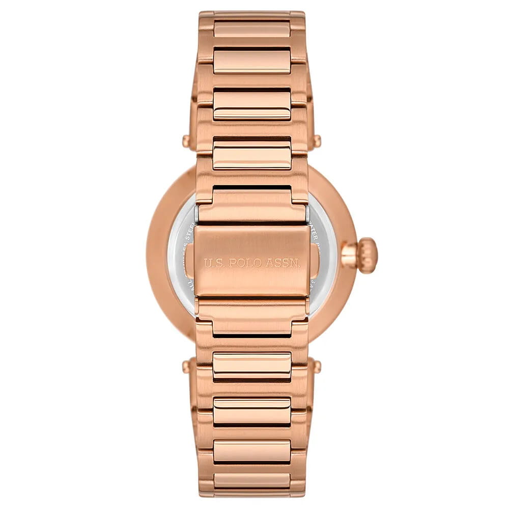 Женские элегантные часы U.S. Polo Assn. Fundamental USPA2099-06, кварцевый механизм с высокой точностью. Минеральное стеклоМинеральное стеклоМинеральное стекло представляет собой искусственно выращенный минерал кварца. Такое стекло отличается особой устойчивостью к повреждениям и царапинам. Уступает по некоторым качествам сапфировому стеклу. устойчивое к появлению царапин, обладающее высокой прозрачностью. Изысканный корпус изготовлен из нержавеющей стали с IP-покрытиемIP-покрытиеМетод ионного напыления. Демонстрирует повышенную устойчивость к истиранию, окислению и химическим веществам. Под воздействием высокого давления и температуры около 1500°C молекулы металла надёжно соединяются с частицами корпуса часов.. Лаконичные центральные часовая, минутная и секундная стрелки. Водонепроницаемость 3 АТМ позволяет использовать часы в повседневных условиях — при мытье рук или под лёгким дождём. Браслет выполнен из стали с IP-покрытиемIP-покрытиеМетод ионного напыления. Демонстрирует повышенную устойчивость к истиранию, окислению и химическим веществам. Под воздействием высокого давления и температуры около 1500°C молекулы металла надёжно соединяются с частицами корпуса часов. и оснащён раскладной застёжкойРаскладная застёжкаТакой тип застёжки используется только на браслетах из металла. Она никогда не раскрывается полностью, происходит разделение на 2 и более частей. Раскладывающая застёжка снизит вероятность потери часов к минимуму., обеспечивающей комфорт и уверенную фиксацию на запястье, а также добавляя завершающий штрих к этому стильному аксессуару. Циферблат подчёркивает изысканный характер часов, создавая универсальный образ, подходящий как для повседневных ситуаций, так и для особых случаев.