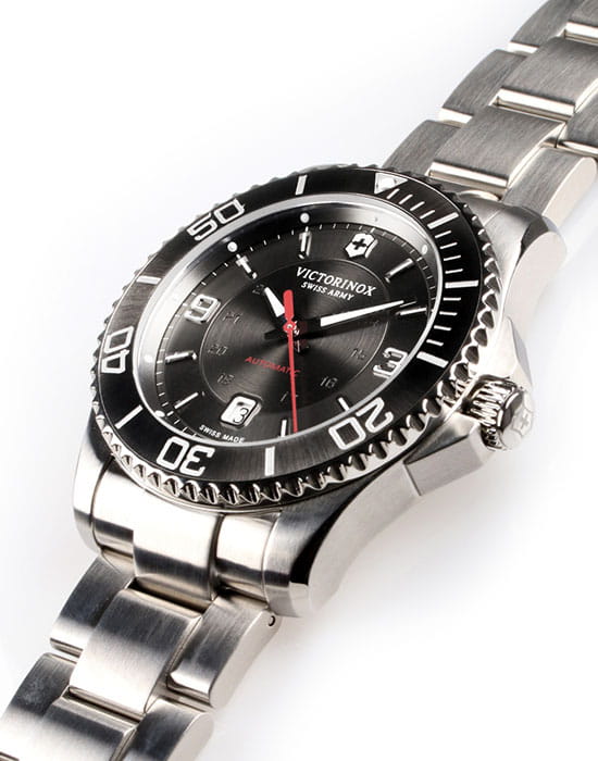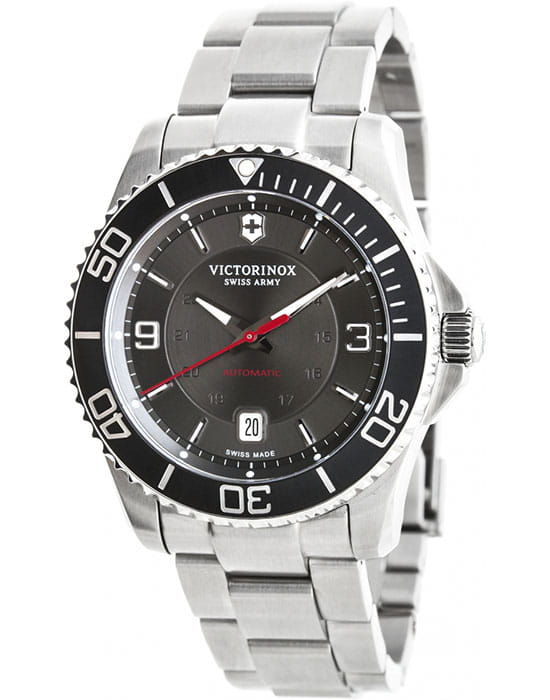 Мужские механические часы с сапфировым стеклом Victorinox 241705, механический механизм (автоматический калибр) с высокой точностью. Класс водозащиты: 100 метров, позволит плавать, нырять и заниматься другими водными видами спорта. Корпус часов изготовлен из стали, цвета.