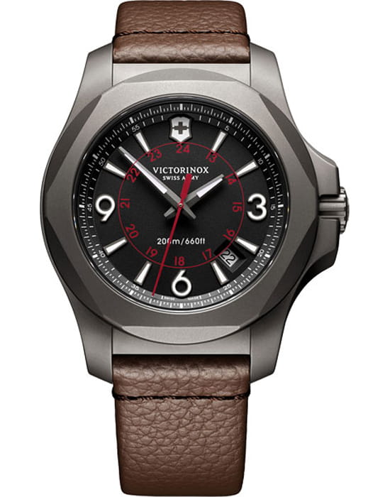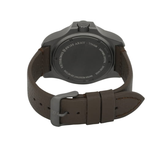 Мужские швейцарские часы Victorinox I.N.O.X. Titanium 241778, кварцевый механизм с высокой точностью. Сапфировое стеклоСапфировое стеклоПрочный и надёжный материал из кристалла сапфира синтетического происхождения, характеризующийся особой твёрдостью и устойчивостью к царапинам и повреждениям. с трёхслойным антибликовым покрытием. Корпус часов выполнен из титана. Стрелки и метки с люминесцентным покрытиемЛюминесцентное покрытиеПозволяет считывать показания времени в темноте. Производители наносят на стрелки, часовые индексы, безель или поверхность циферблата светонакопительный состав, дающий холодное свечение.. Класс водозащиты: 200 метров, позволит плавать, нырять и заниматься другими водными видами спорта. Кожаный ремешок.